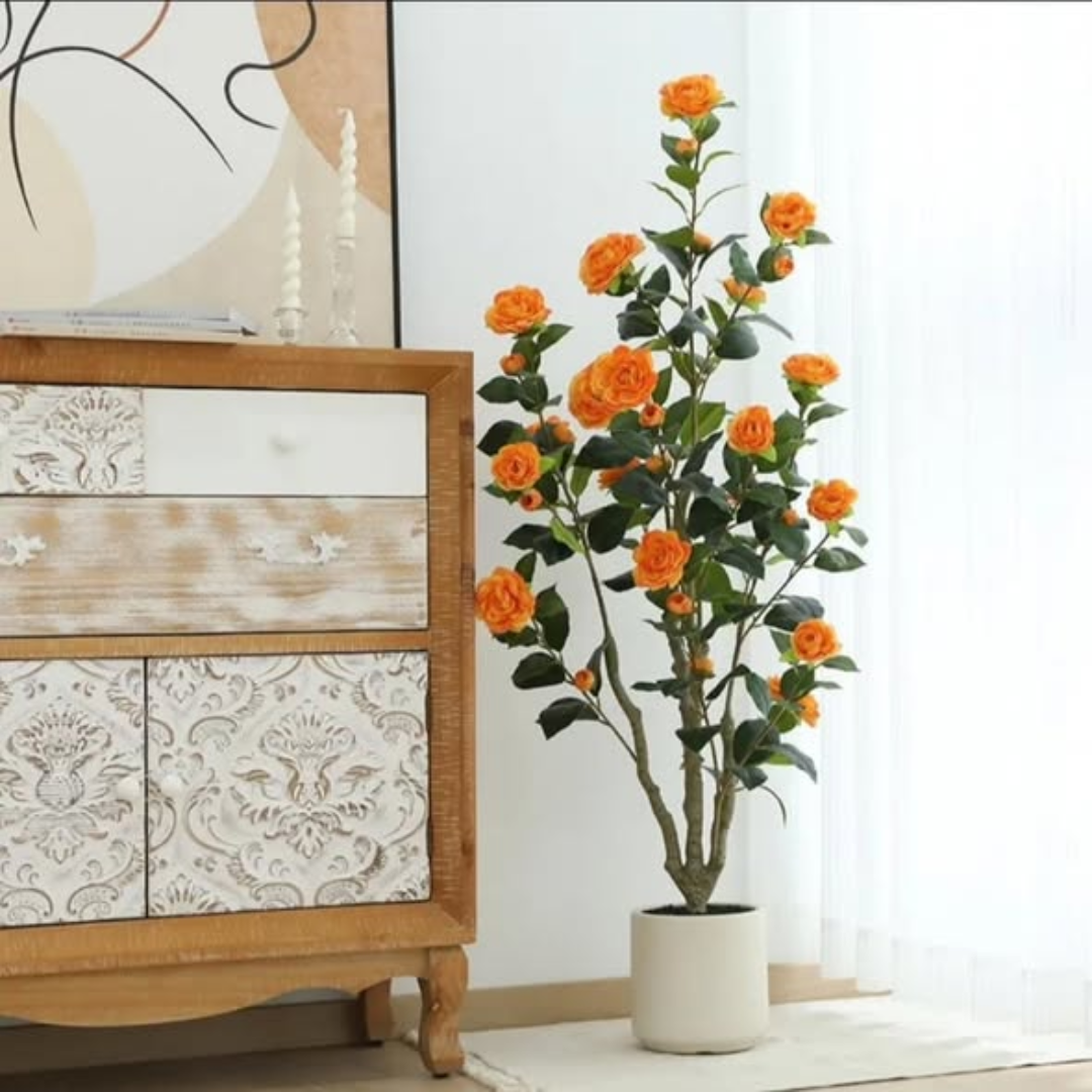 Because it is fully artificial, the 1.2m Realistic Artificial Camellia Tree requires zero watering, pruning, or sunlight, making it an ideal choice for low-light indoor areas. The trunk is crafted to mimic the natural texture and growth patterns of a real tree, providing an authentic look that fools the eye. It comes in a stable starter pot that can be easily placed inside a larger decorative planter to match your specific interior style. This maintenance-free tree offers a permanent floral display that stays in peak bloom every day of the year.