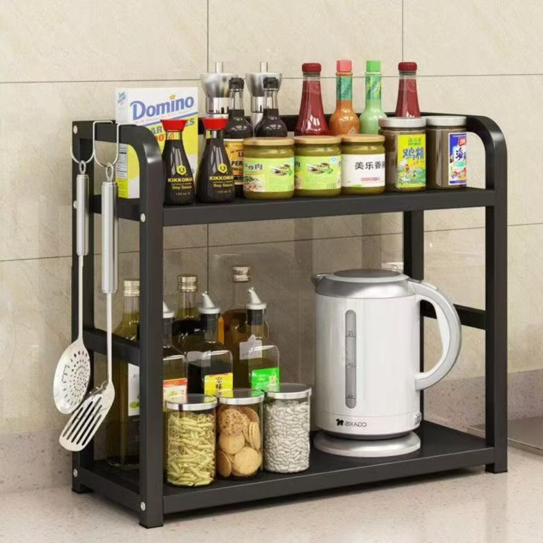 This versatile rack offers two spacious layers that can be used for multiple storage purposes. Whether you need extra room in the kitchen for spices, jars, or utensils, or a stylish rack for your bathroom, office, or living room, this multifunctional rack delivers.