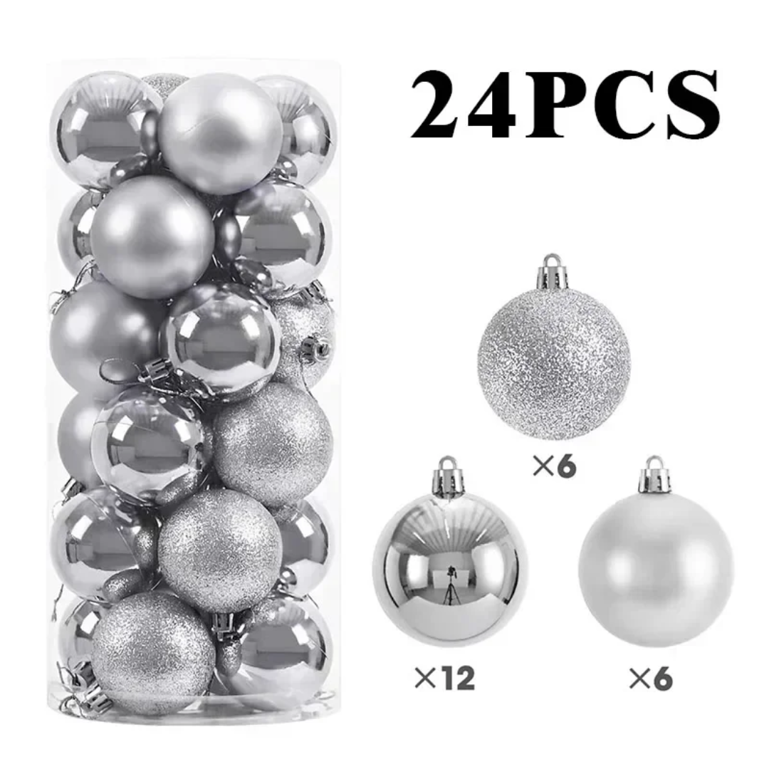 Elegant 24pcs Silver Christmas Decor Balls for Tree Decoration
