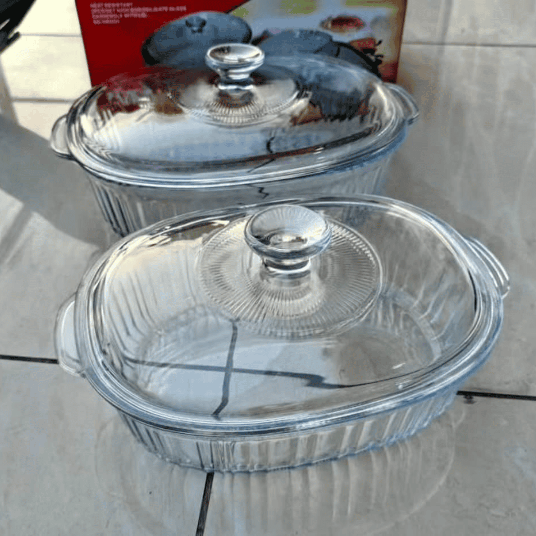 2pc Glass Baking Tins with Lids – Oven and Microwave Friendly