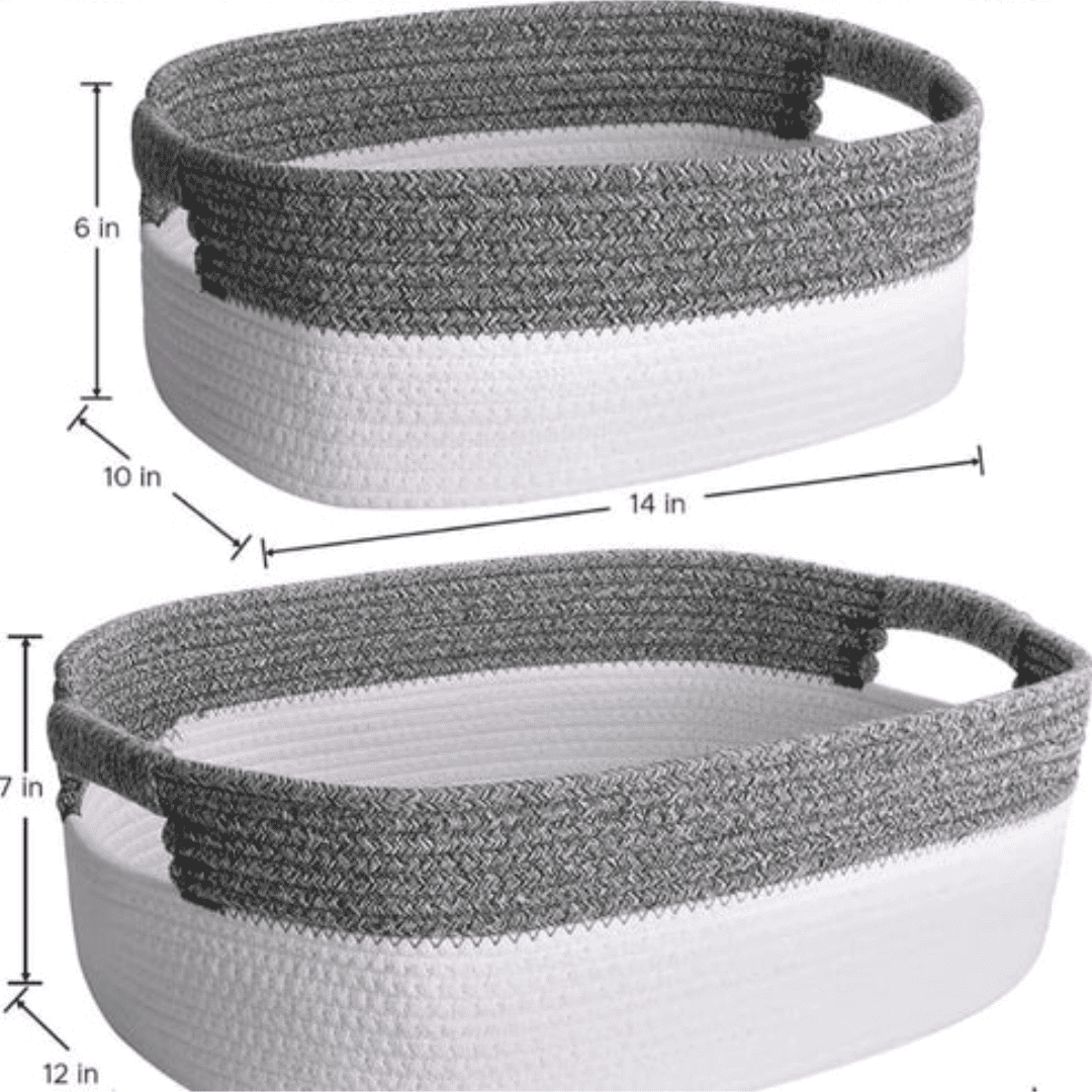 Crafted with a sturdy construction, the baskets maintain their shape while remaining lightweight and easy to carry. Their neutral grey and white tones add a calm and chic accent to bedrooms, bathrooms, living rooms, or entryways. Use them as laundry hampers, toy storage bins, or even as plant holders—these versatile baskets can do it all.