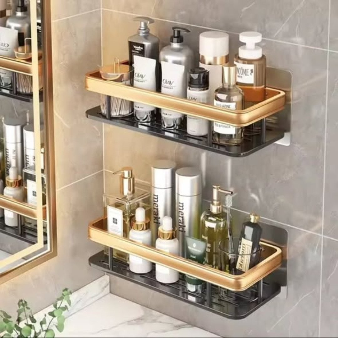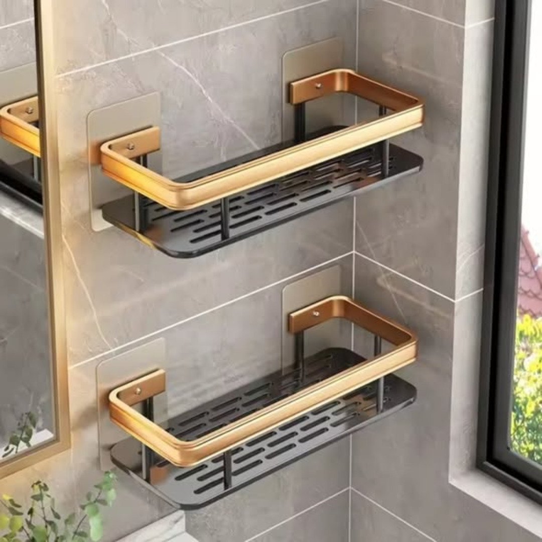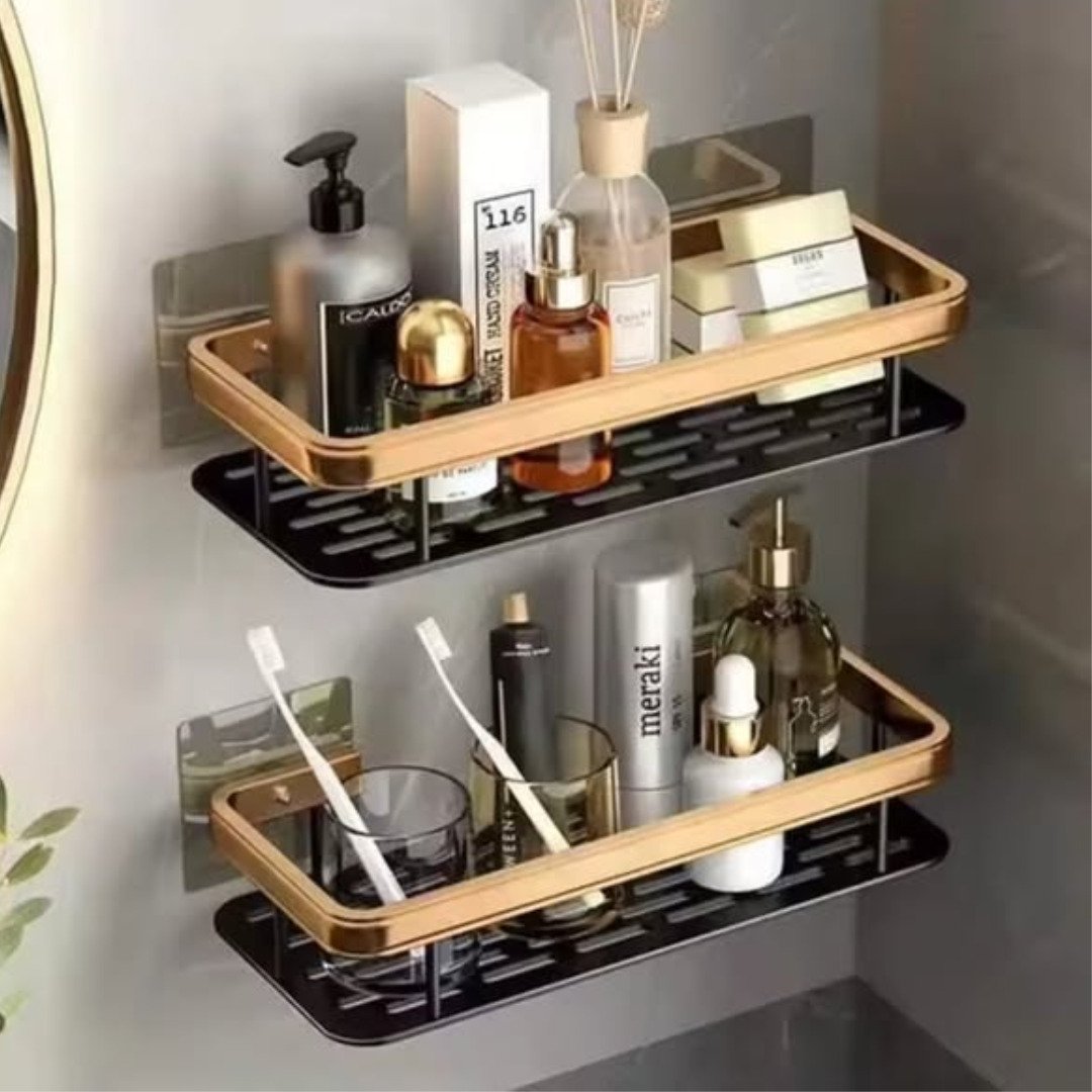 Maximize your storage with the 2pcs Aluminum Alloy Rectangular Shelf set, available in a striking black and gold finish. This 2pcs Aluminum Alloy Rectangular Shelf collection is the ultimate organizer for both bathrooms and kitchens, offering a sleek, rust-proof solution for holding toiletries, spice jars, or skincare products. Made from premium aluminum alloy, these shelves are lightweight yet incredibly strong, designed to maintain their elegant appearance in humid environments.