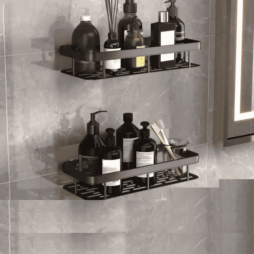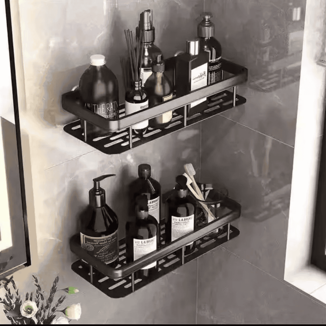 Upgrade your bathroom or kitchen with the 2pcs Aluminum Alloy Rectangular Shelf with Adhesive Stickers, a rustproof wall-mounted solution perfect for storing essentials in style. Designed for effortless installation, each shelf comes with heavy-duty adhesive stickers, eliminating the need for drilling or damage to your walls.