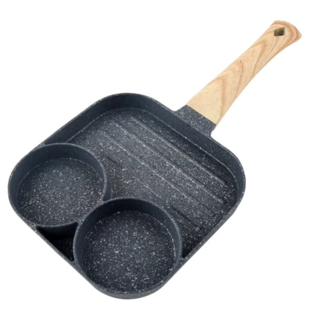 Simplify breakfast with the 3 Compartment Nonstick Pancake Pan. Perfect for eggs and pancakes. Order now for delivery in Nairobi!