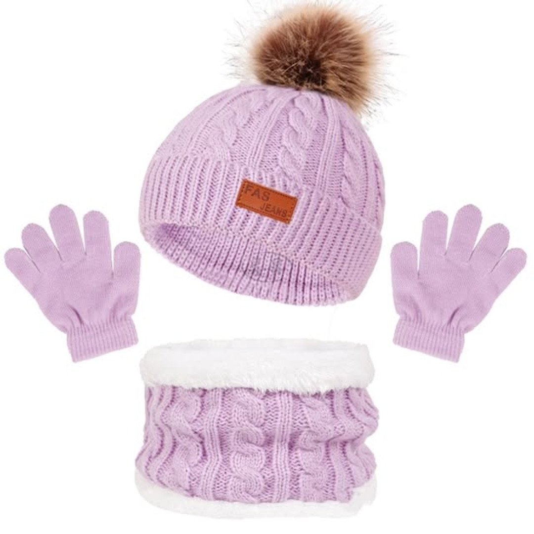 Full Winter Kit: Complete 3-piece set includes a matching beanie, scarf, and gloves.