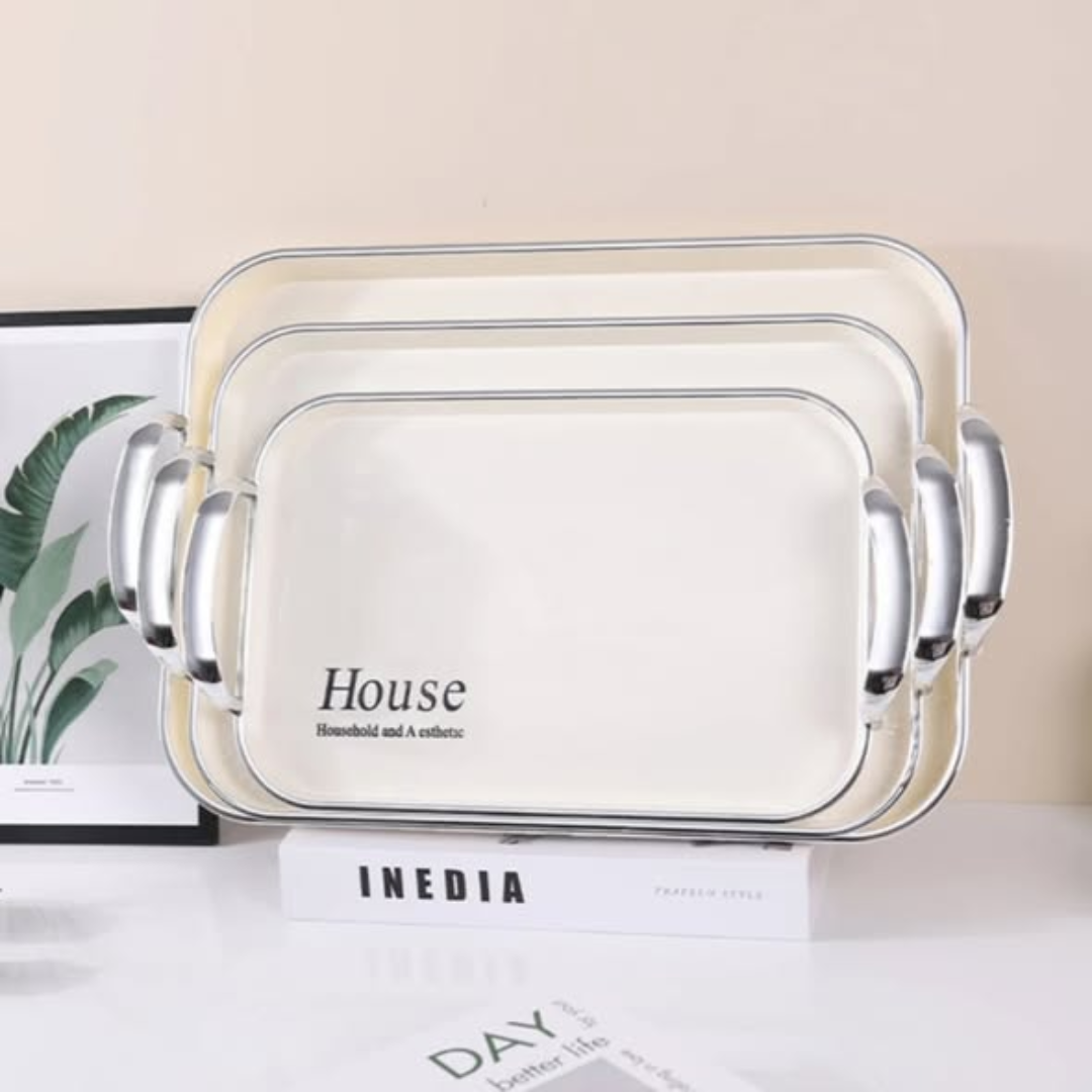 The 3 Pcs Acrylic Tray set is a modern and sophisticated solution for serving and organization in any contemporary home. This 3 Pcs Acrylic Tray collection features a crystal-clear design that mimics the look of glass but offers the lightweight durability and shatter-resistance of high-quality acrylic. Whether you are serving cocktails to guests, bringing breakfast to bed, or organizing luxury perfumes on a vanity, these trays provide a sleek, “invisible” aesthetic that complements any decor style.
