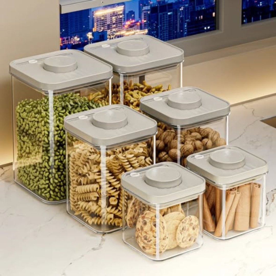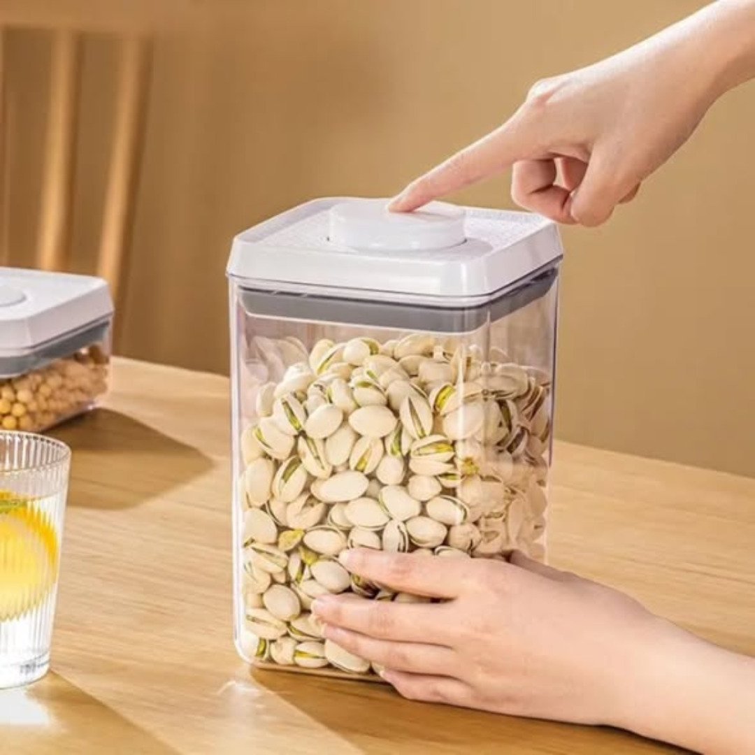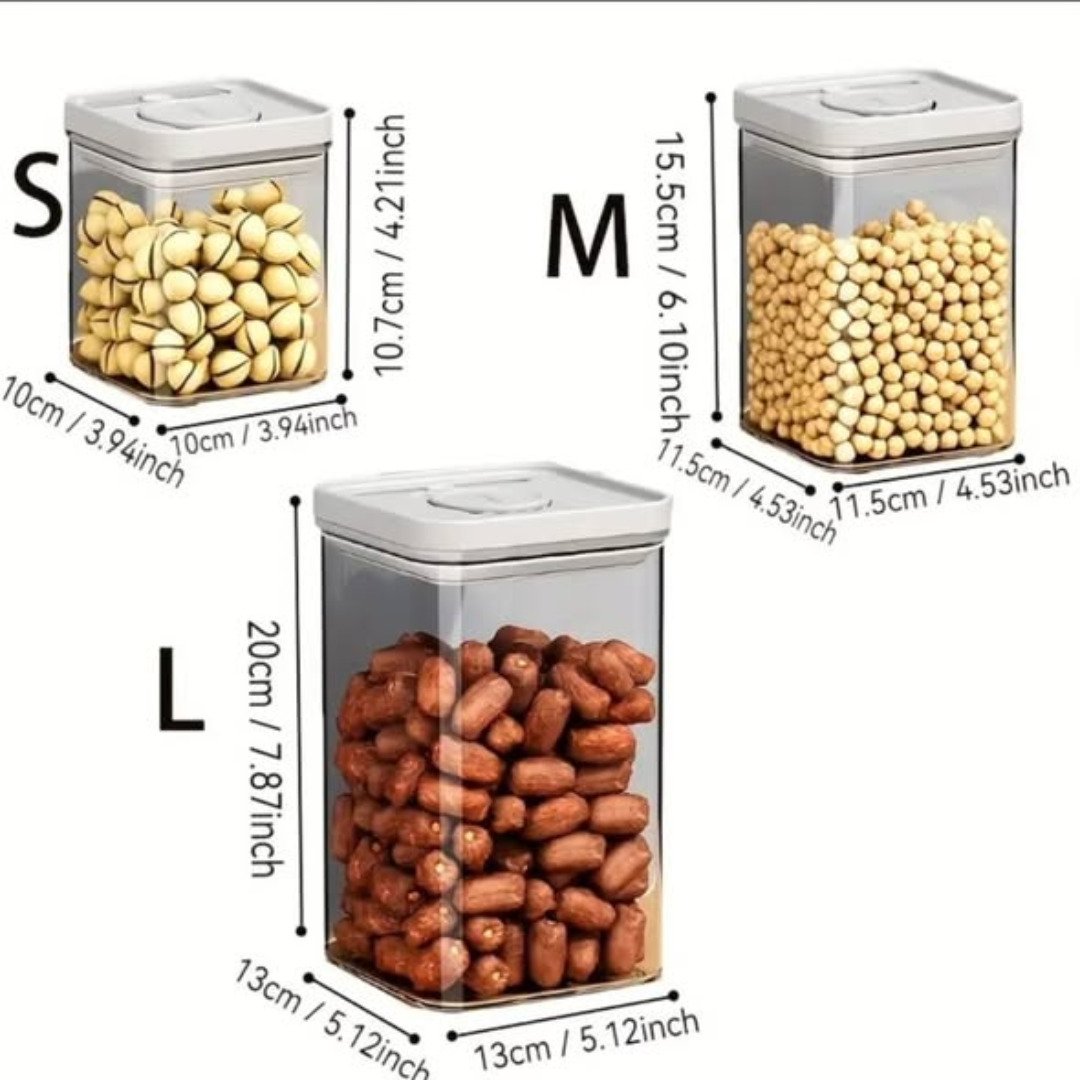 The 3 pcs Airtight Press-to-Seal Food Storage Container set brings advanced technology to your kitchen organization. Gone are the days of struggling with difficult latches; these containers feature a “press-to-seal” lid that creates a vacuum-tight environment with a single touch. The 3 pcs Airtight Press-to-Seal Food Storage Container with Lid is perfect for Kitchen Organization, Ideal for Grains, Pasta, Tea, Nuts & Coffee Beans. By removing excess air, it preserves the delicate flavors and aromas of your favorite ingredients, ensuring they taste fresh every time you use them.