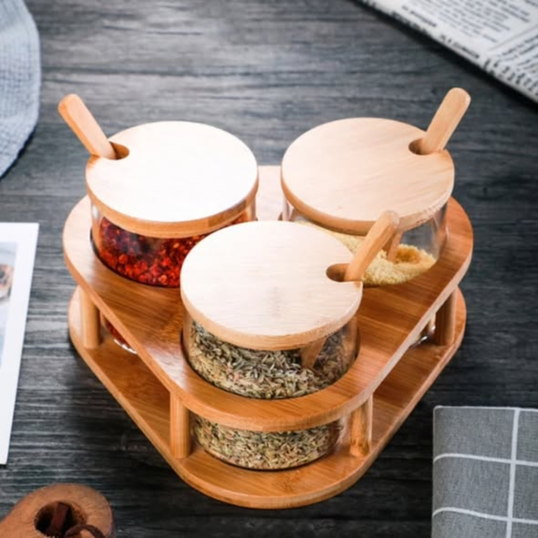 The 3 pcs glass spice containers set with a bamboo holder is a sophisticated solution for keeping your kitchen organized and your flavors fresh. Investing in a 3 pcs glass spice containers collection allows you to transition away from mismatched plastic jars and into a cohesive, high-end culinary environment. Each of the three containers is crafted from high-clarity glass, making it easy to identify your spices at a glance, from vibrant turmeric to aromatic dried herbs. The set is beautifully showcased in a natural bamboo holder, which provides a sturdy and eco-friendly base that looks stunning on any kitchen countertop or pantry shelf.