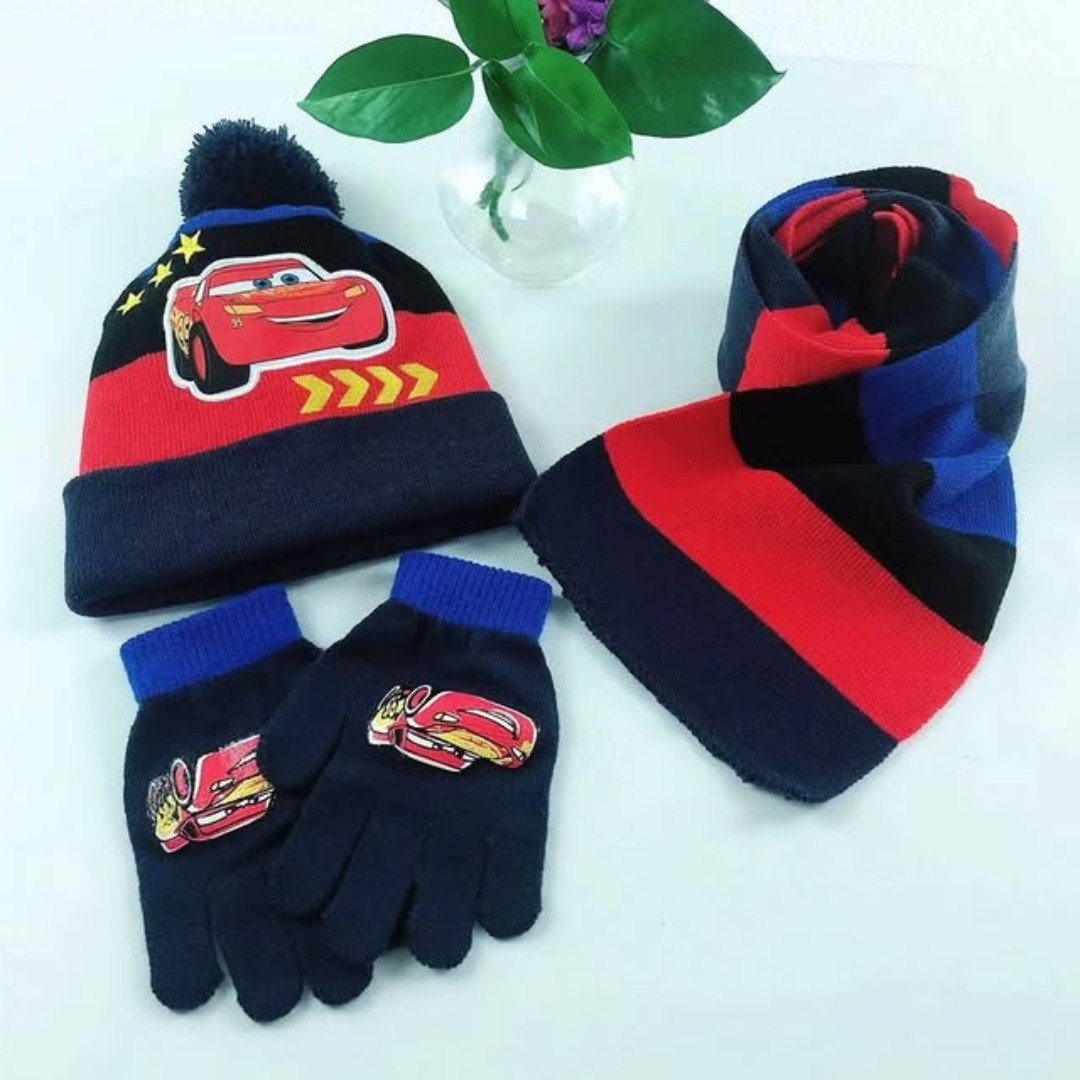 3 Piece Cartoon Themed Hat Scarf and Gloves Set