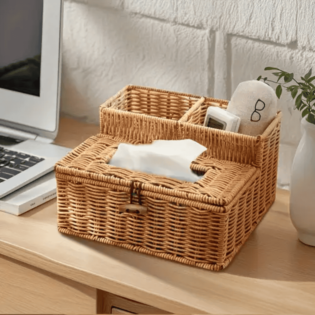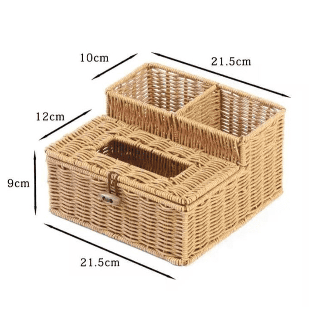 3-Slot Storage Organizer with Serviette Holder – Rattan