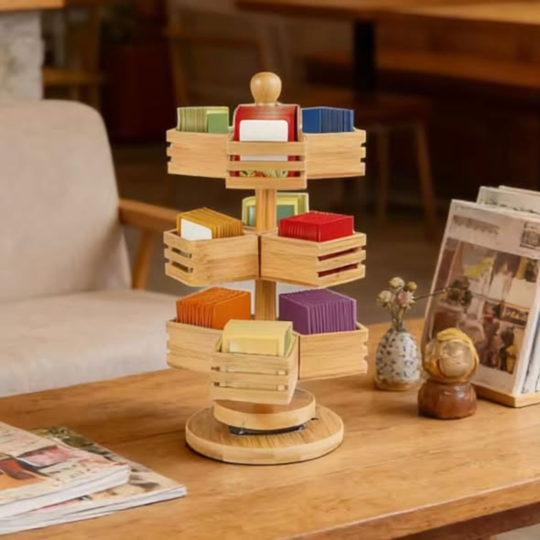 The 3 Tier Rotating Bamboo Tea Bag Organizer is a “stylish” and “functional” accessory designed to keep your “tea collection neat, organized, and easy to access.” This “360° Rotating Design” is “Perfect for kitchens, tea stations, cafés, or office pantries,” allowing you to find your favorite flavor with a “simple” spin. Crafted from “Eco-friendly Bamboo Material,” its “Natural bamboo finish adds warmth to your kitchen” while providing a “durable and sturdy” “work station” for your daily brew.