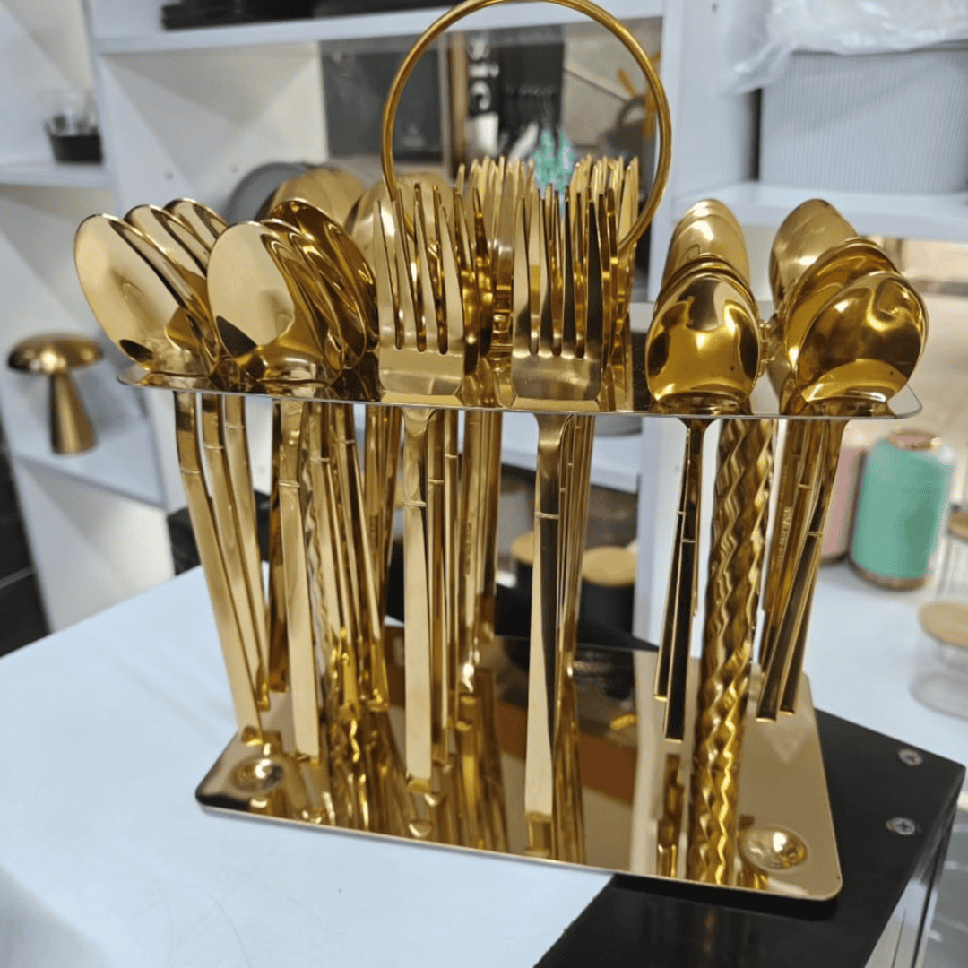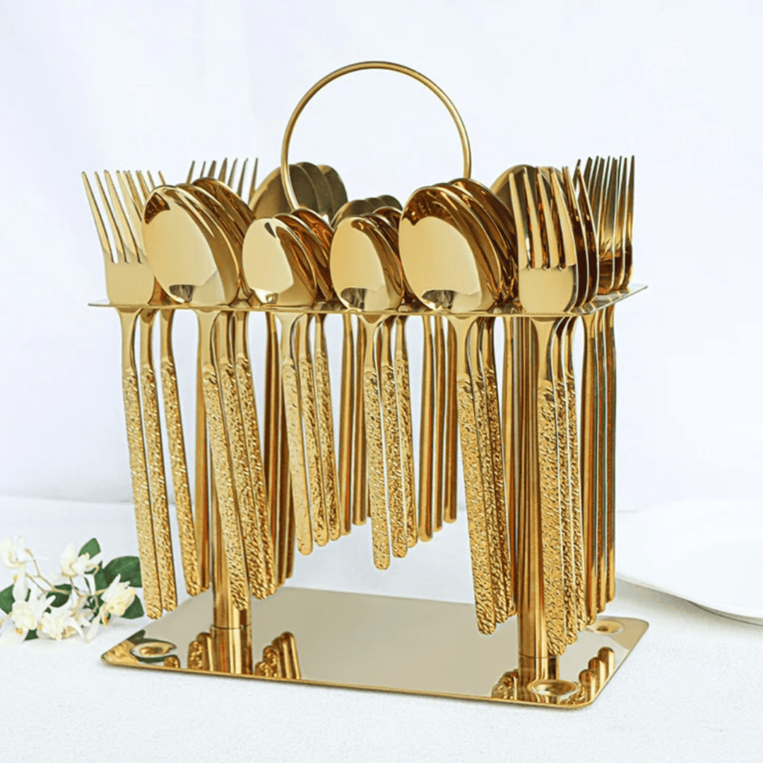 Crafted from high-quality, non-rust stainless steel, this cutlery set is built to last while maintaining its golden shine. The polished finish not only adds a touch of luxury to your table but also makes the cutlery resistant to tarnishing, corrosion, and everyday wear. Unlike ordinary cutlery, this set is designed to withstand long-term use without losing its sophisticated appearance.