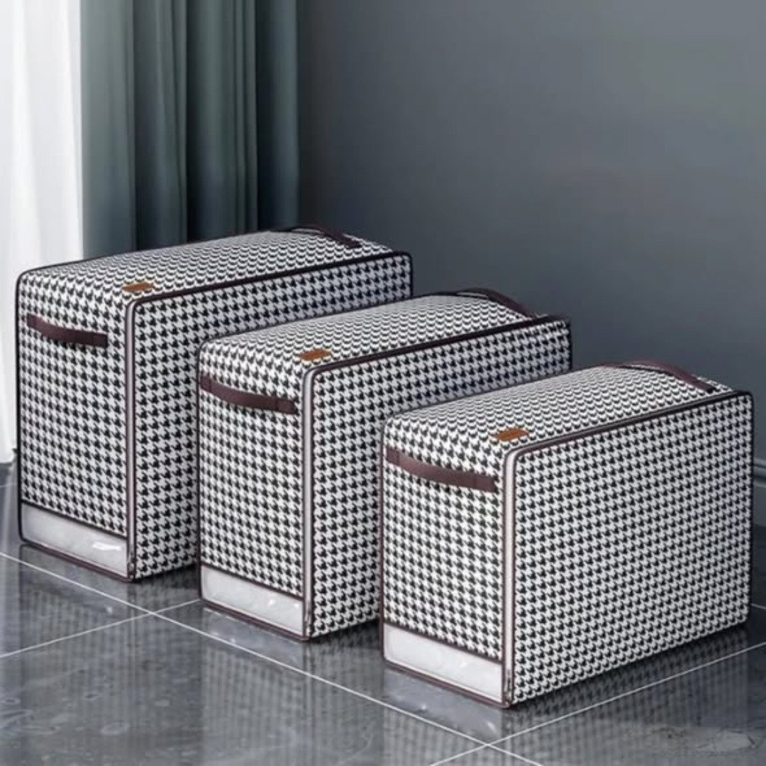 The 3pcs Quilt Duvet Closet Organizer is made from strong non woven fabric that offers reliable protection against dust and moisture. Its waterproof design ensures your stored items remain fresh and safe. With three different sizes included 55×40×25cm, 60×45×25cm, and 65×50×30cm—you can conveniently organize items of various dimensions.