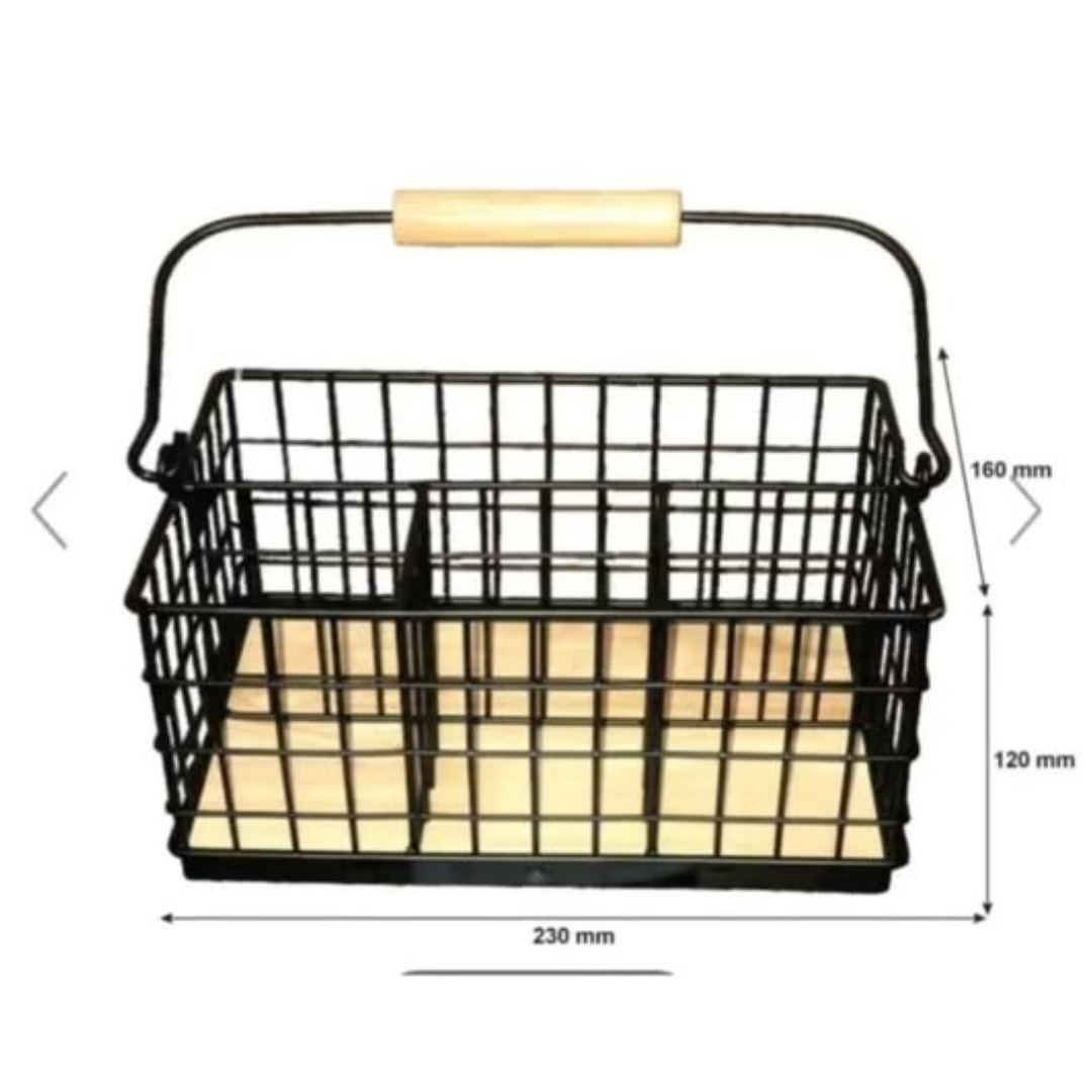 The 4 in 1 Cutlery holder with handle is a sophisticated organizational tool designed to bring order and elegance to your dining table or kitchen counter. This 4 in 1 Cutlery holder with handle features four distinct compartments, allowing you to neatly separate your spoons, forks, knives, and teaspoons for easy access. Combining a sleek metallic frame with a natural bamboo base, it offers a modern-industrial aesthetic that complements both contemporary and rustic home decor styles.