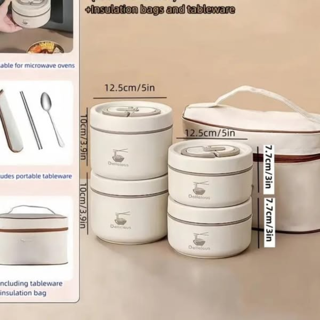 Crafted from food-safe materials, these containers come with airtight lids to prevent spills and maintain freshness. The inclusion of cutlery makes it an all-in-one solution for students, professionals, and travelers who prefer carrying their meals. Easy to clean and reusable, this eco-friendly set helps reduce reliance on disposable packaging.