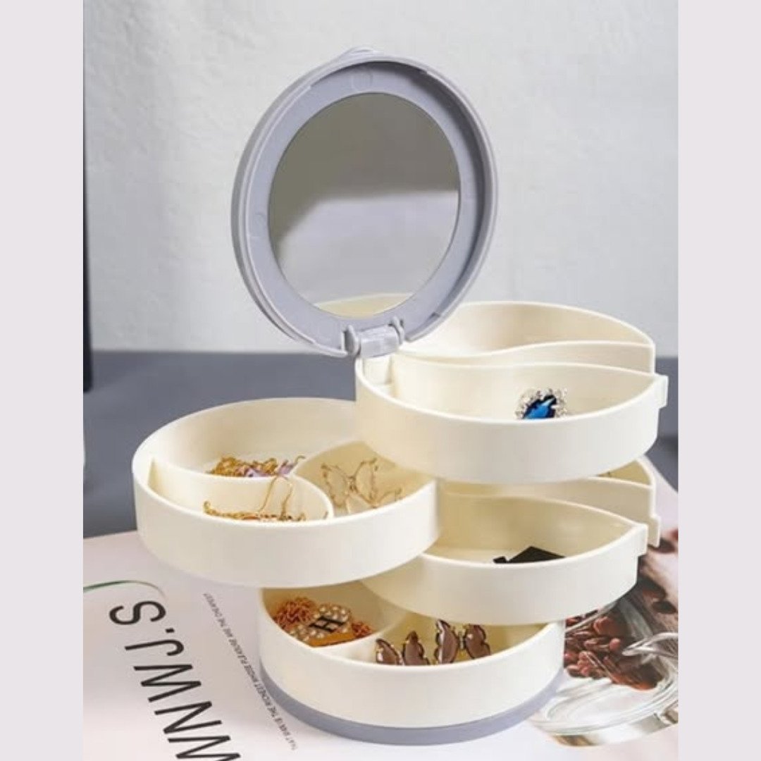 The standout feature of this organizer is its 360-degree rotation, which allows you to access any layer instantly without having to move the entire unit. When closed, it forms a sleek cylinder that saves significant desk space while protecting your items from environmental exposure. Each tray is deep enough to hold multiple items, and the smooth finish prevents your delicate metals from being scratched. Whether you are a minimalist with a few key pieces or a collector with a vast array of accessories, the 4 layer 360 rotating jewellery storage organizer is the perfect way to streamline your morning routine and protect your investments.