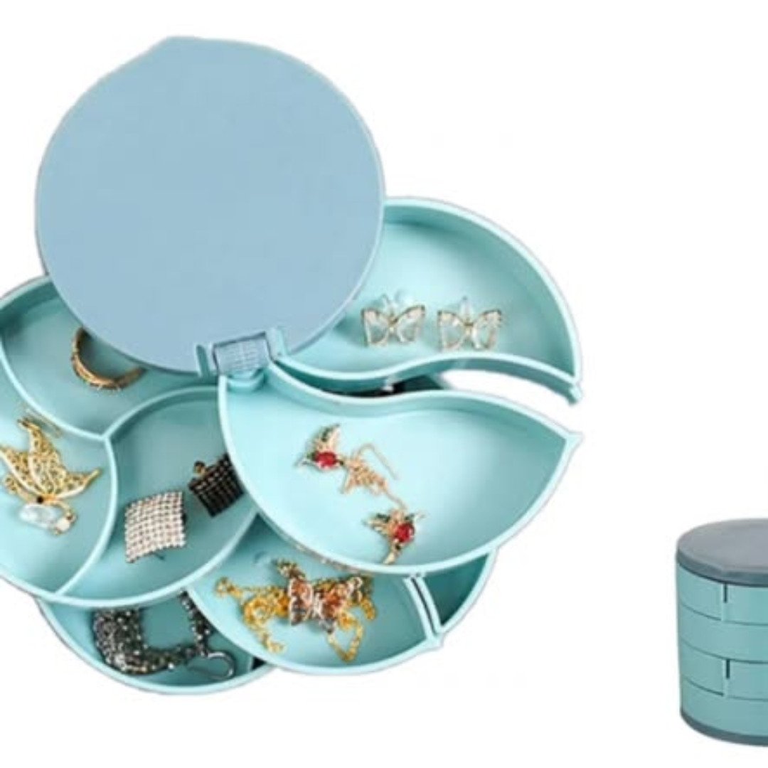 Keep your precious accessories in pristine condition with the 4 layer 360 rotating jewellery storage organizer, a stylish and practical solution for any vanity. This compact tower features four separate compartments that allow you to categorize your earrings, rings, necklaces, and bracelets with ease. The 4 layer 360 rotating jewellery storage organizer is designed to keep your jewellery organized and simple to find away from dust and liquids, ensuring your favorite pieces remain shiny and untangled. Available in beautiful blue, pink, and white colors, this organizer is as decorative as it is functional.