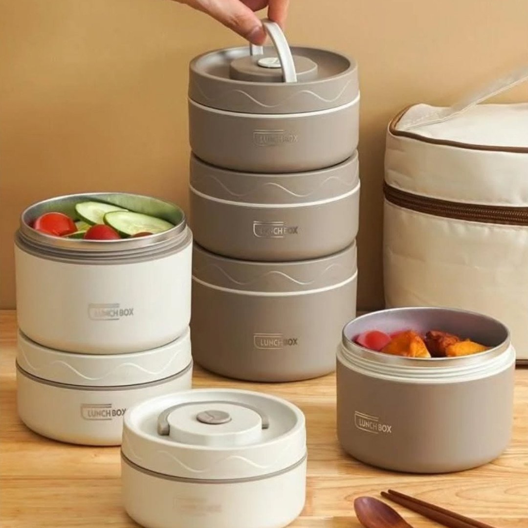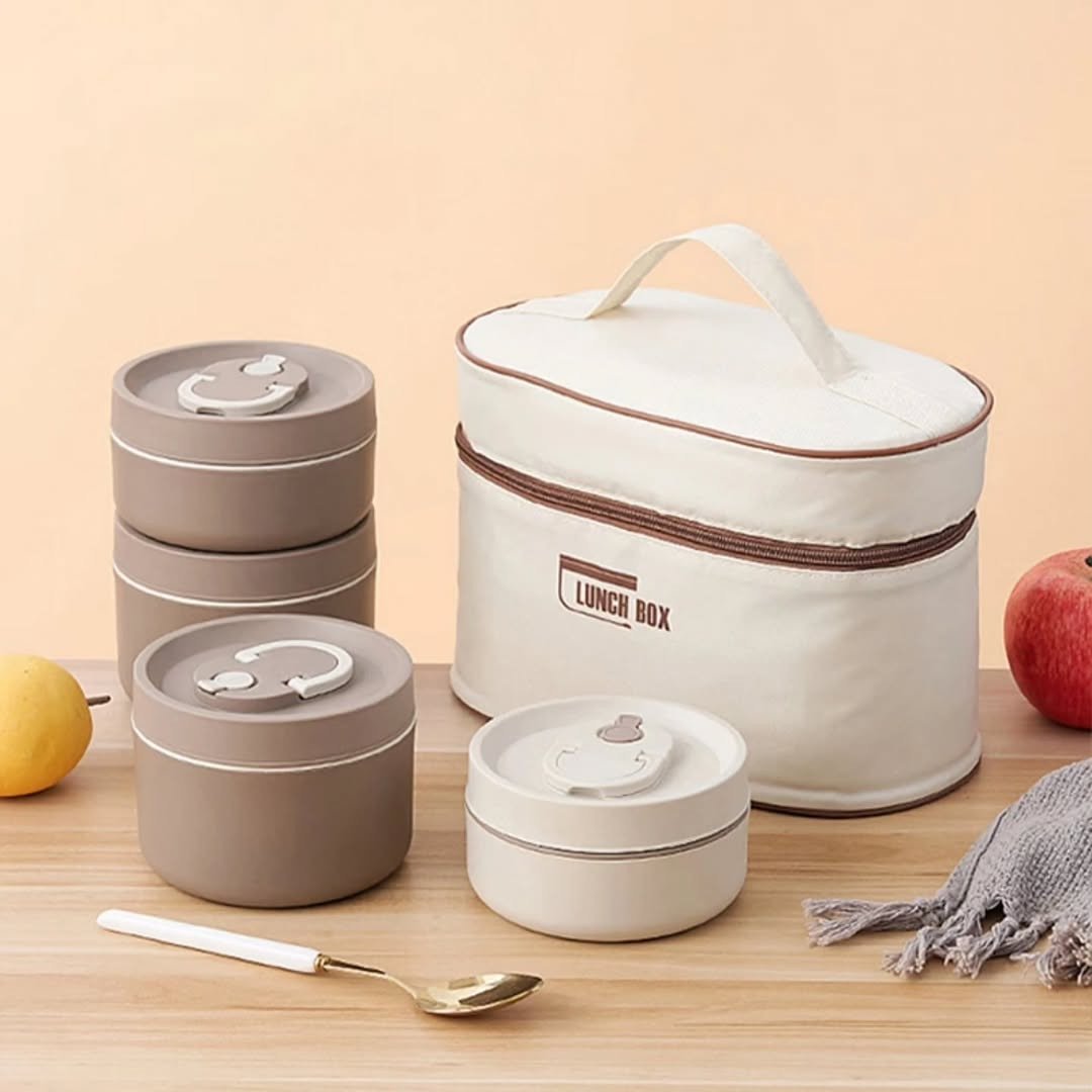 This set includes four lunch boxes, one insulated lunch bag, and a gold cutlery set, providing everything you need in one convenient package. The insulated lunch bag helps maintain food temperature for hours, making it ideal for packed meals on busy days.