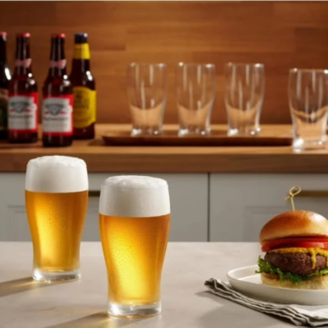 The ergonomic shape of these beer glasses is designed for a comfortable and secure grip, while the weighted base provides excellent stability on any table or bar surface. The reinforced rim is built to resist chipping, ensuring that this set remains a durable staple in your glassware collection for years. These glasses move effortlessly from casual outdoor gatherings to formal dinner parties, offering a timeless aesthetic that appeals to every beer enthusiast. They are also versatile enough to be used for large servings of iced tea, soda, or water.