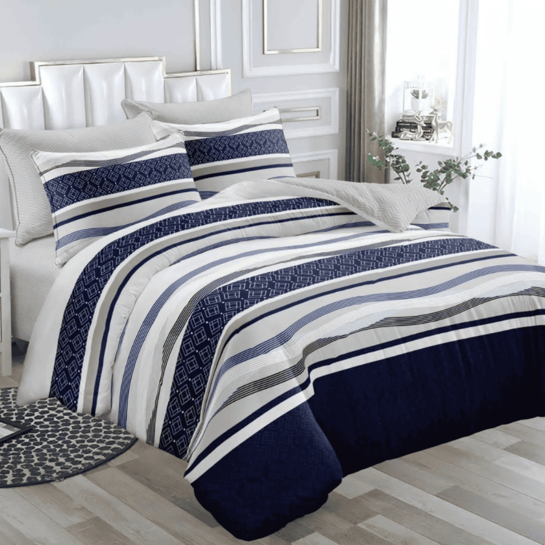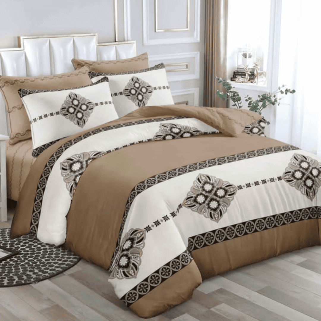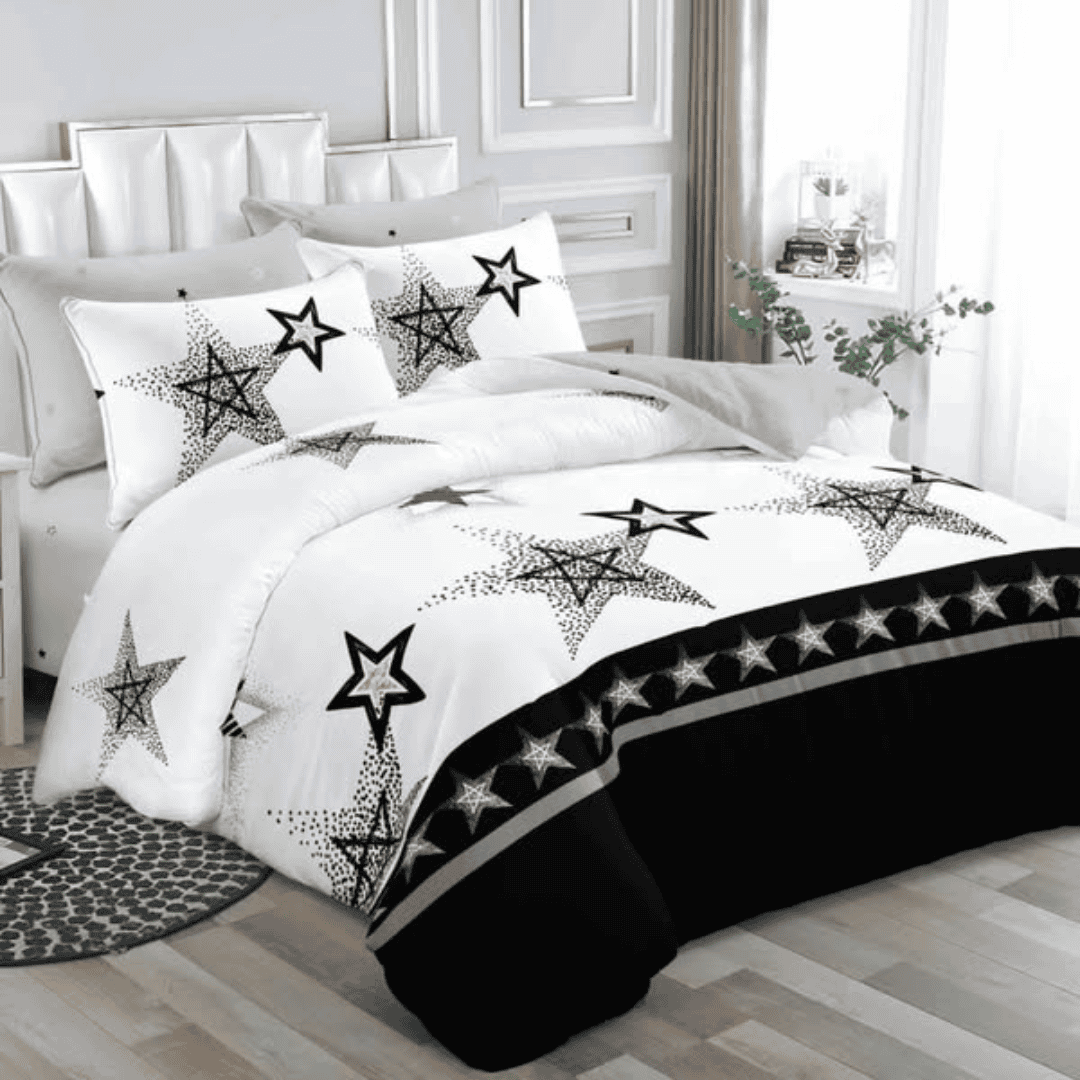 Experience ultimate comfort with the 6×7 4-Pcs Binded Duvet Set, featuring one duvet, one bedsheet, and two pillowcases. This set is designed for both warmth and style, making it perfect for year-round use. The duvet provides a cozy sleeping experience, while the matching bedsheet and pillowcases enhance your bedroom’s elegance.