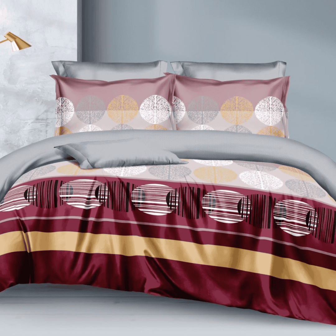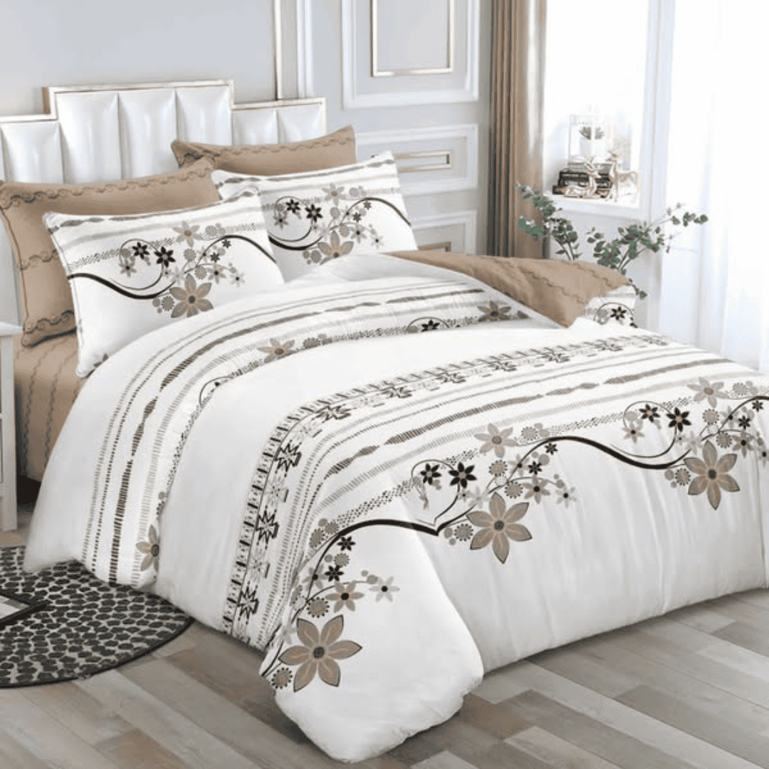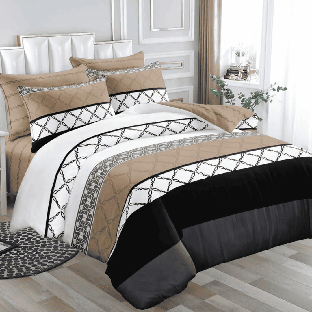 Experience ultimate comfort with the 6×7 4-Pcs Binded Duvet Set, featuring one duvet, one bedsheet, and two pillowcases. This set is designed for both warmth and style, making it perfect for year-round use. The duvet provides a cozy sleeping experience, while the matching bedsheet and pillowcases enhance your bedroom’s elegance.