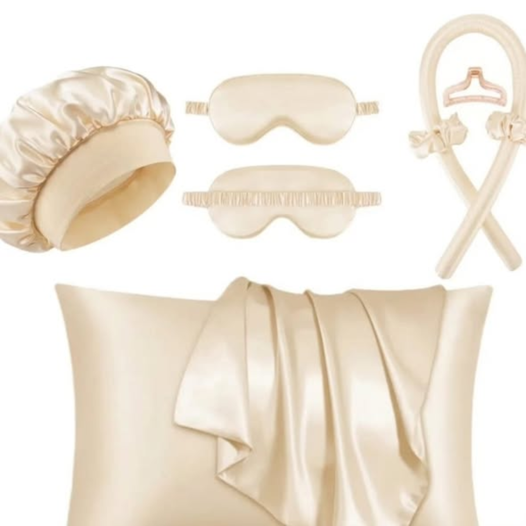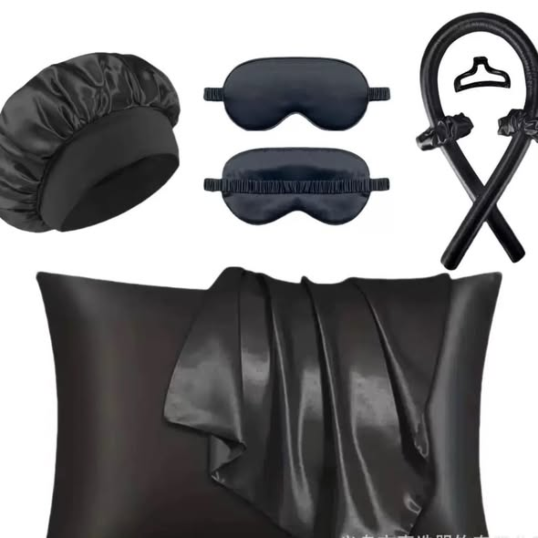 Complete 7-Piece Kit: Includes a pillow case, eye mask, hair bonnet, curling headband, hair clip, and two hairbands.