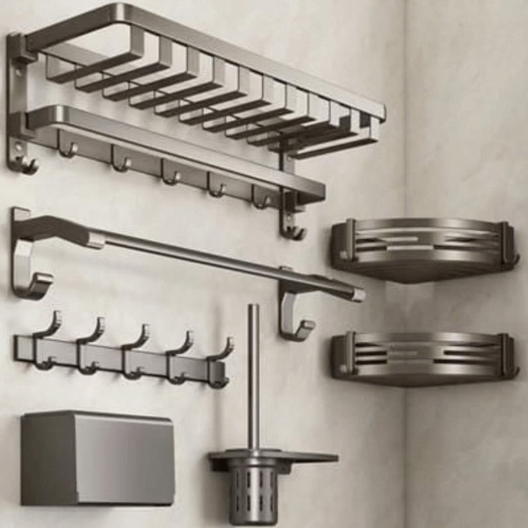 7-Piece Premium Bathroom Organizer Set – Comprehensive Wall-Mounted Storage Kit with Towel Rack, Corner Shelves, Toilet Brush, and Tissue Box