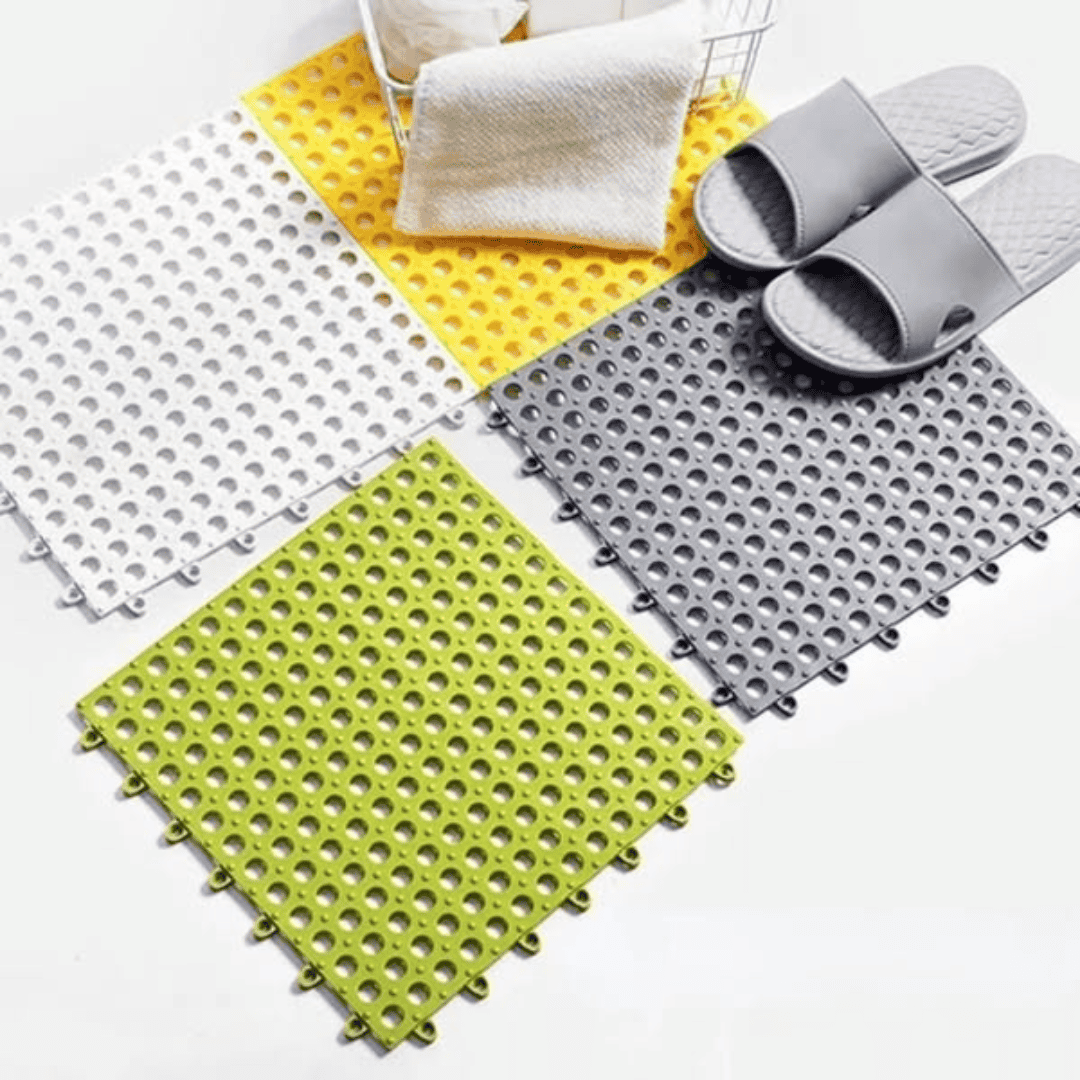 Enhance safety and style with the 9Pcs Interlocking Anti-Slip Floor Mats, designed for bathrooms, balconies, kitchens, and laundry areas. Featuring a quick-dry drainage design, these mats prevent water accumulation, keeping your floors dry and safe.