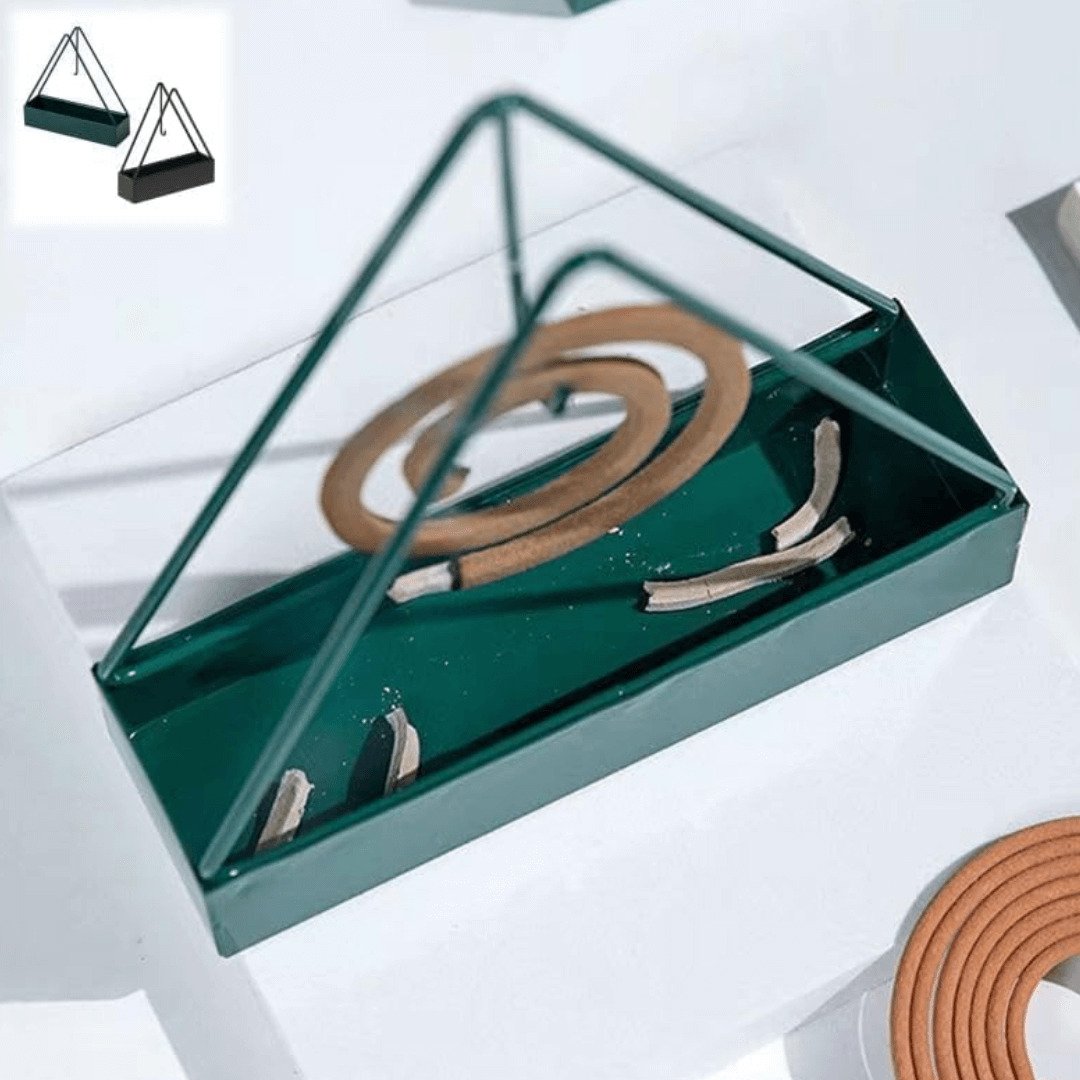 Modern Triangular Anti-Scald Mosquito Coil Holder – Metal Incense Burner with Ash Collection Tray for Indoor & Outdoor Use