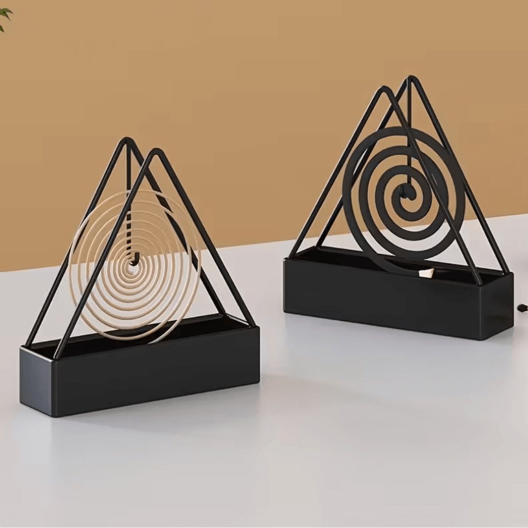 This heavy-duty metal mosquito coil holder features a minimalist triangular frame designed to securely suspend coils for even burning.