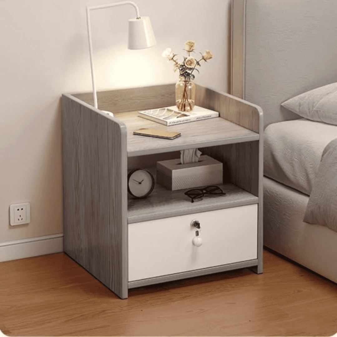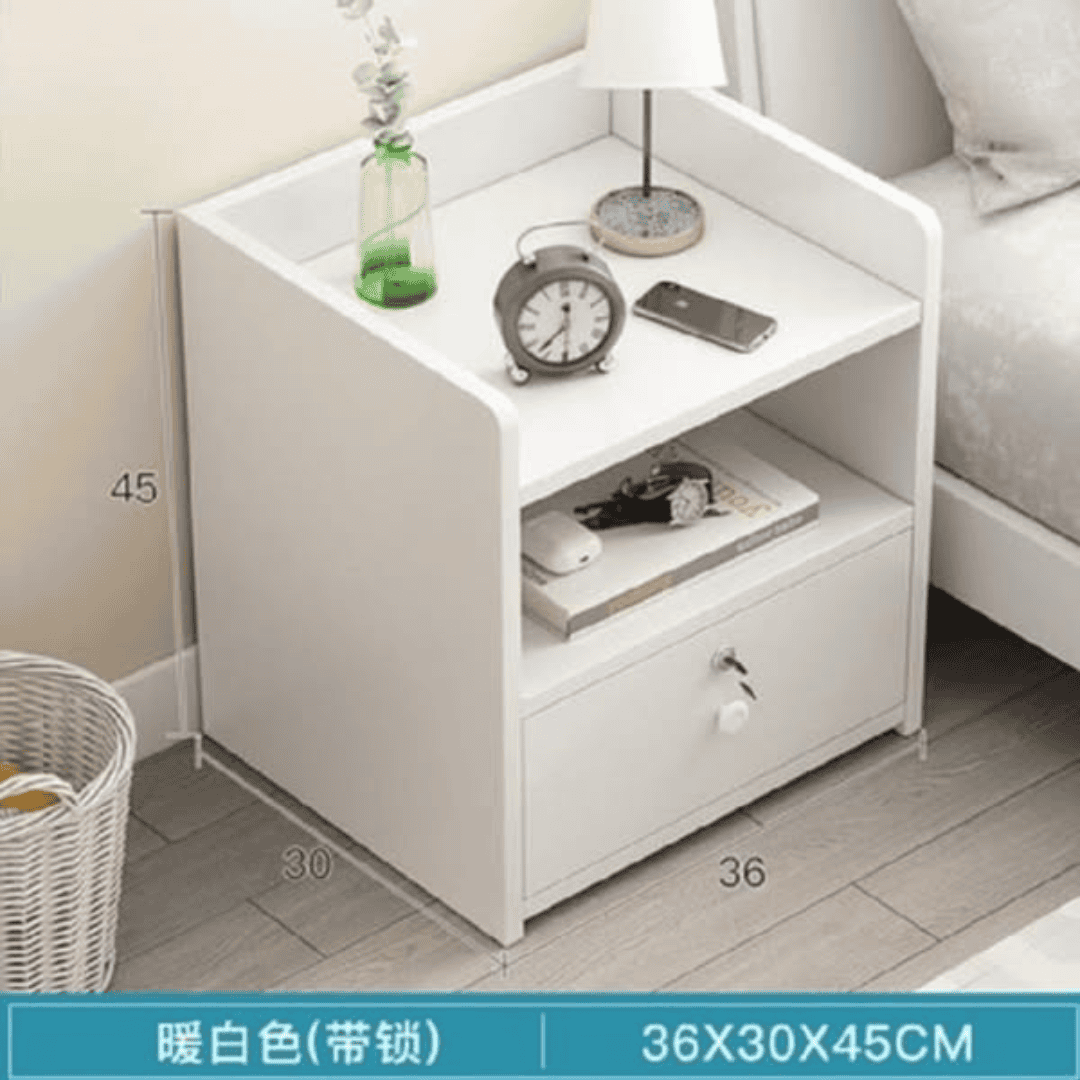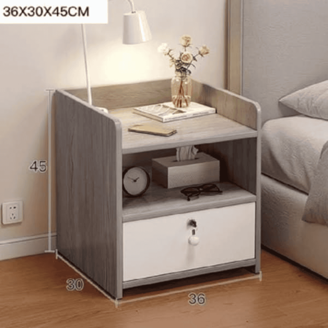 Organize your space with the Bedside Storage, designed to combine practicality and style. Measuring 36x30x45cm, this compact bedside cabinet features one spacious drawer with a secure lock to keep your personal items safe. Available in elegant grey and white colors, it complements modern interiors while providing functionality for your bedroom or office.