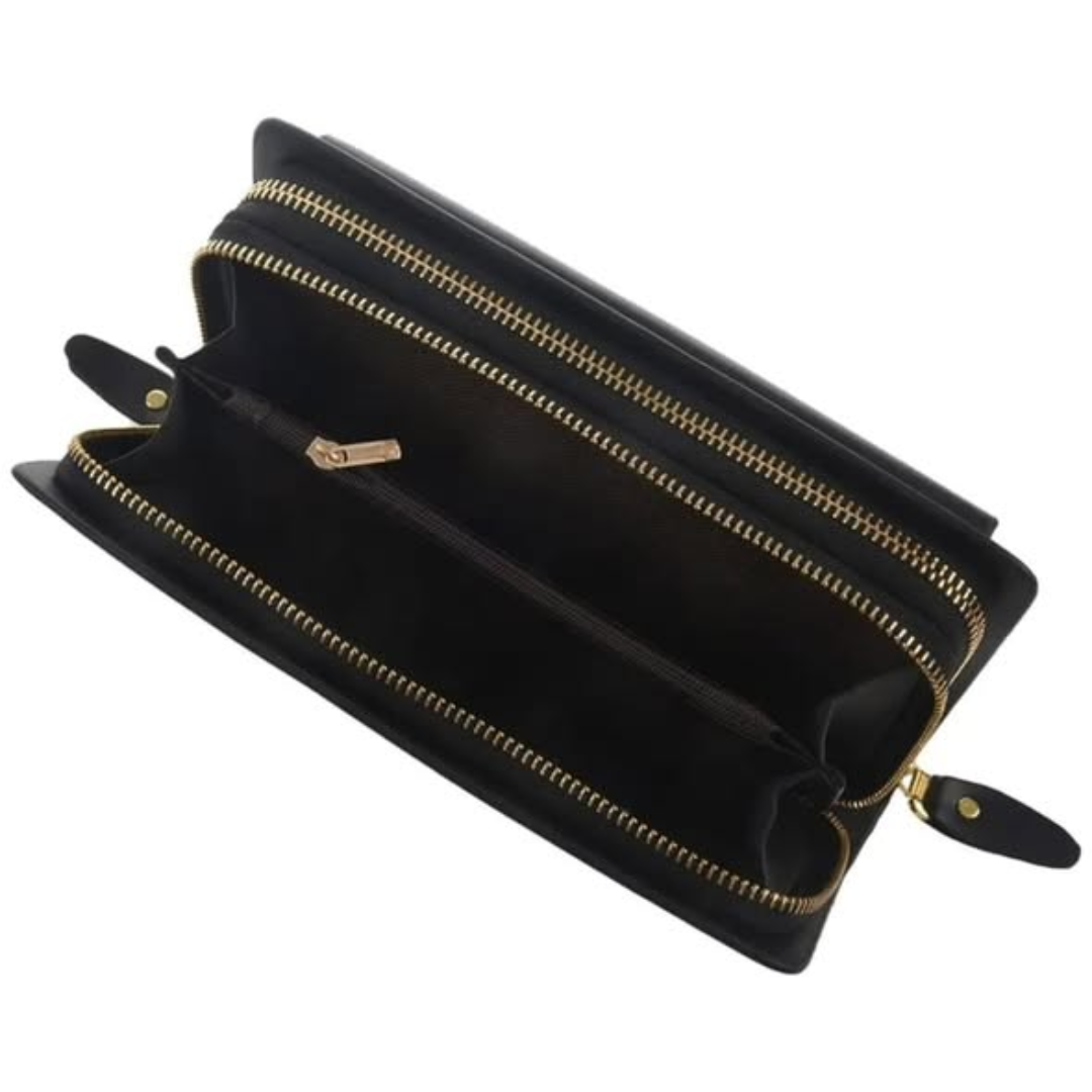 Whether you’re looking for a secure way to carry your valuables or need a stylish companion for your handbag, this clutch guarantees convenience and efficiency. It is anti scratch and waterproof, helping reduce the worry of accidental spills or wear and tear, making it perfect for busy women on the move. Because it has double zipper compartments and a coins slot, you can categorize your cash and cards easily, ensuring you never have to fumbled at the checkout. Available in classic Black & Brown, it matches any outfit from a power suit to a cocktail dress. Functional, sleek, and universally elegant, the Business model clutch bag remains a must-have accessory for anyone who loves staying organized and looking their best.