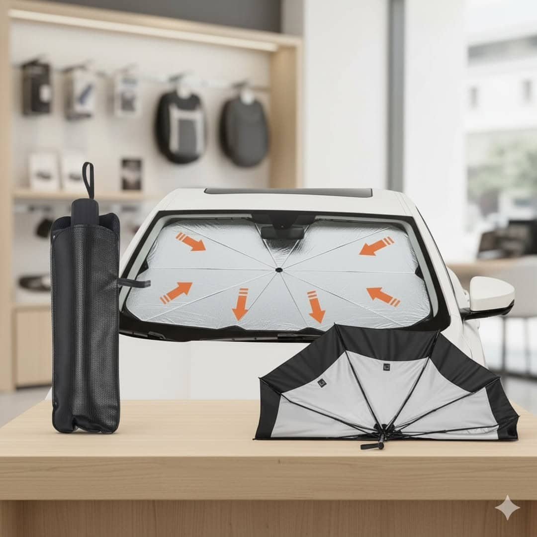 The Car Dashboard Umbrella Sun Visor Windscreen Cover is an innovative accessory designed to shield your vehicle’s interior from harsh sunlight, UV rays, and extreme heat. Inspired by the structure of an umbrella, this windscreen cover unfolds effortlessly to create full coverage, protecting your dashboard, steering wheel, seats, and electronic components from heat damage and fading. Whether your car is parked outdoors at work, at home, or during errands, this sun visor ensures your interior stays significantly cooler.