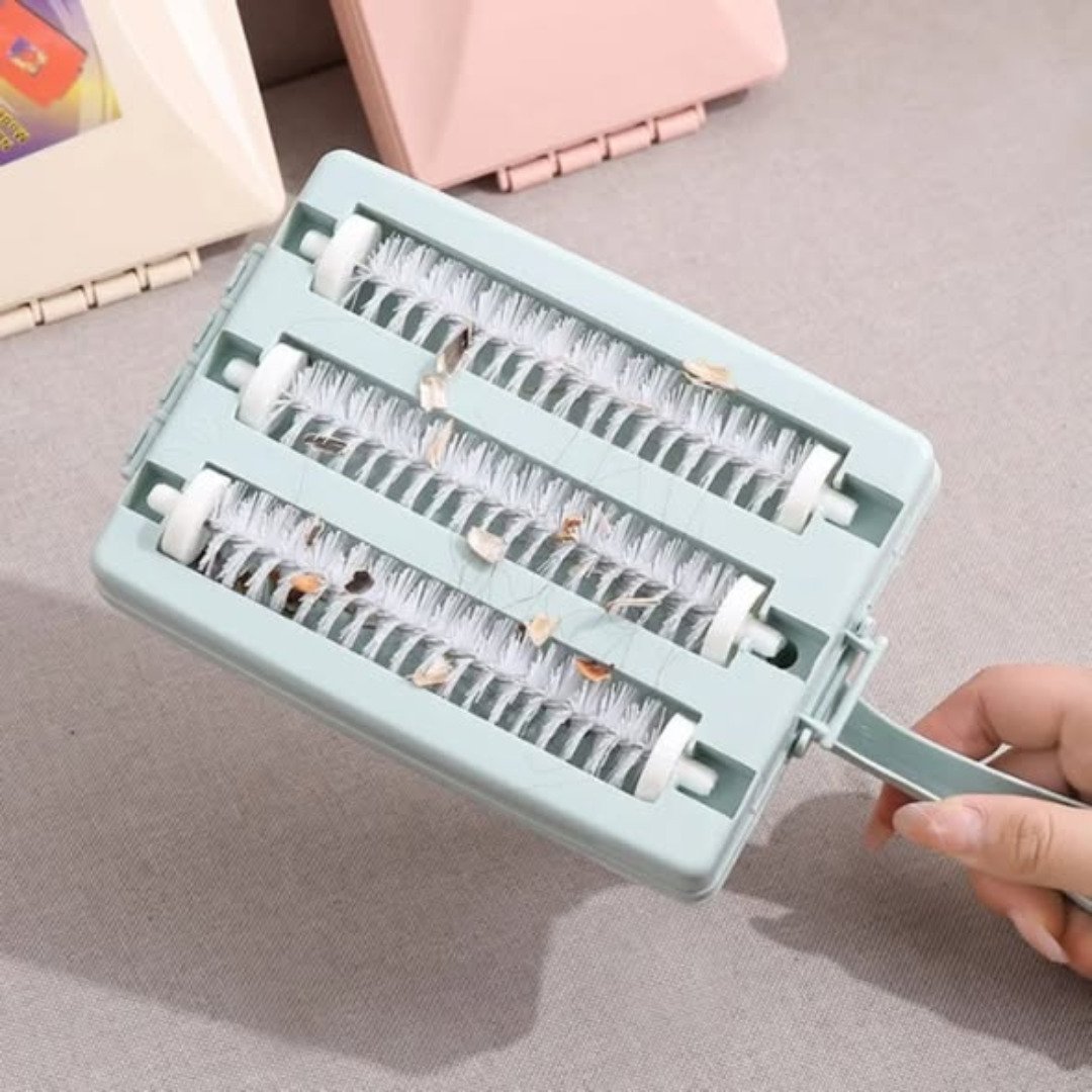 Mini Vacuum Functionality: Manual rolling action picks up hair, crumbs, and dust like a handheld vacuum.