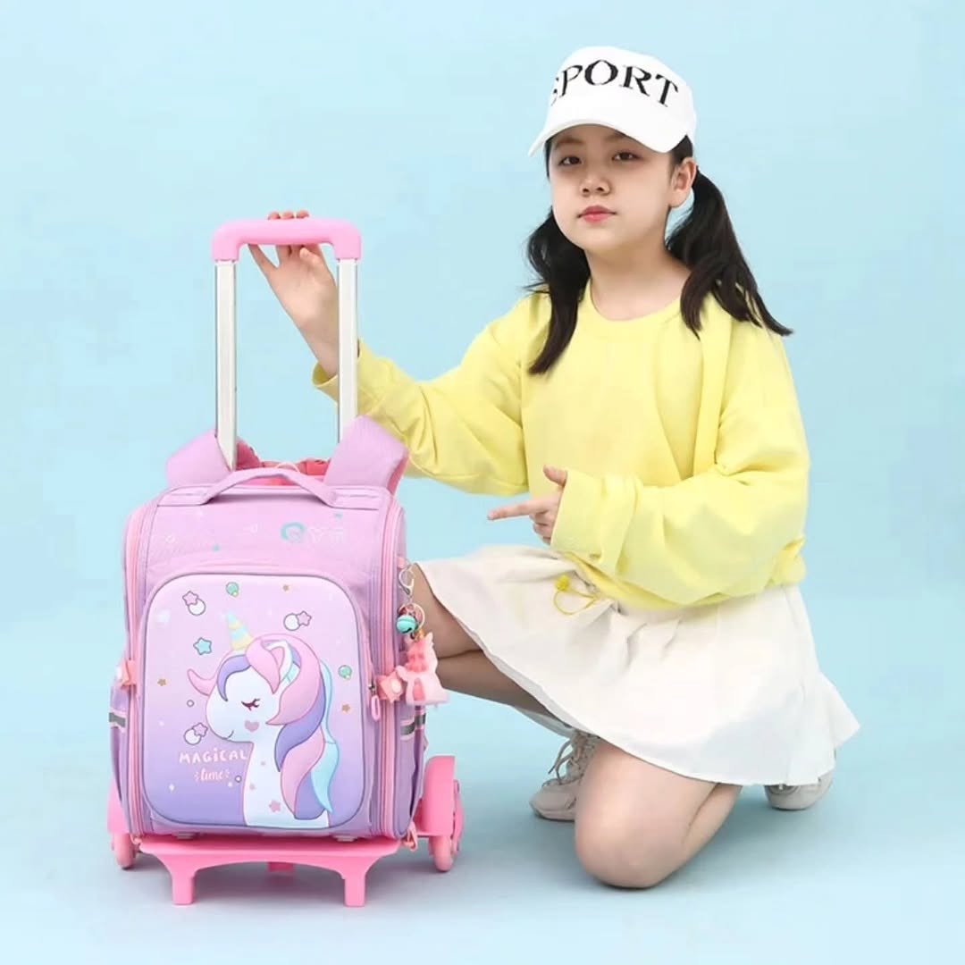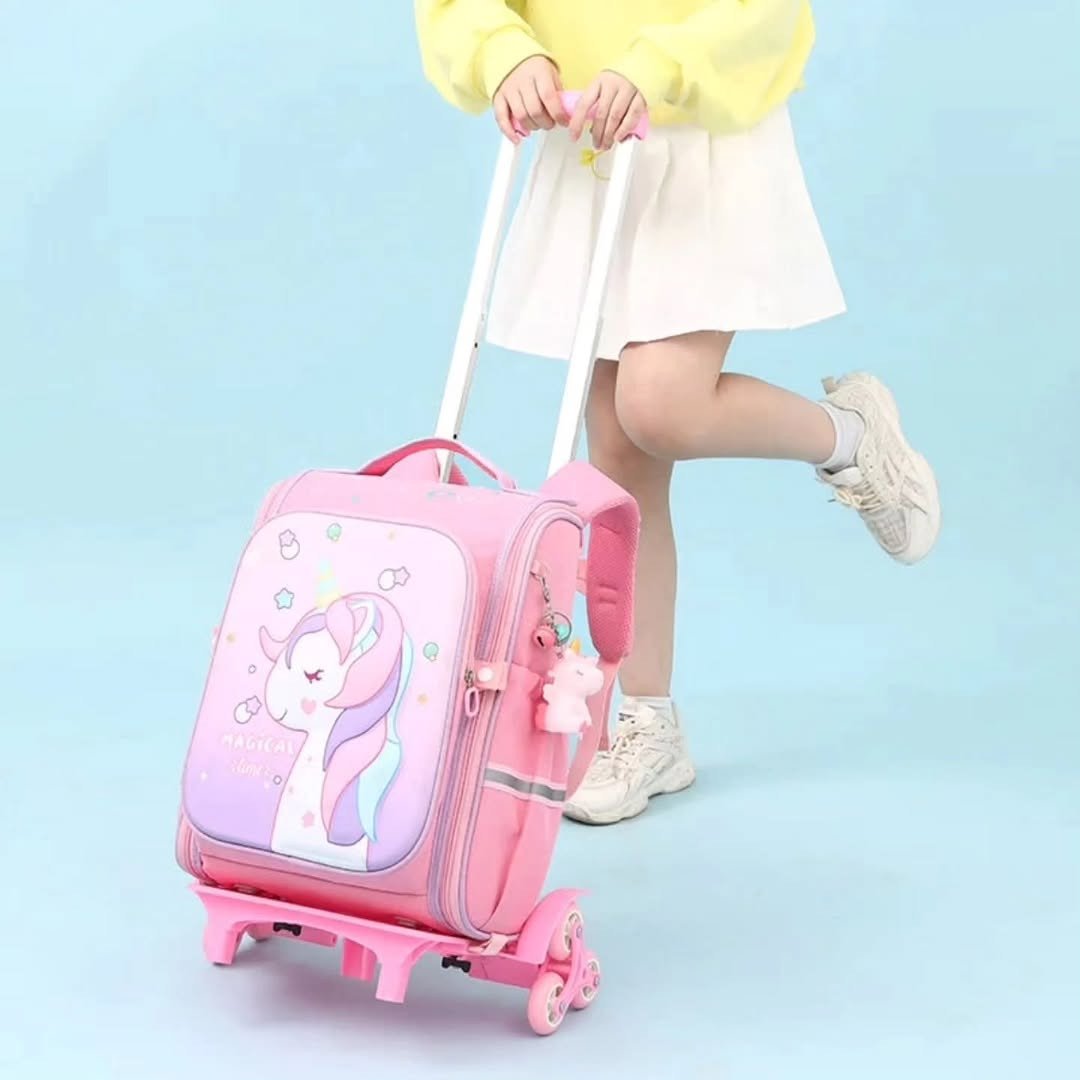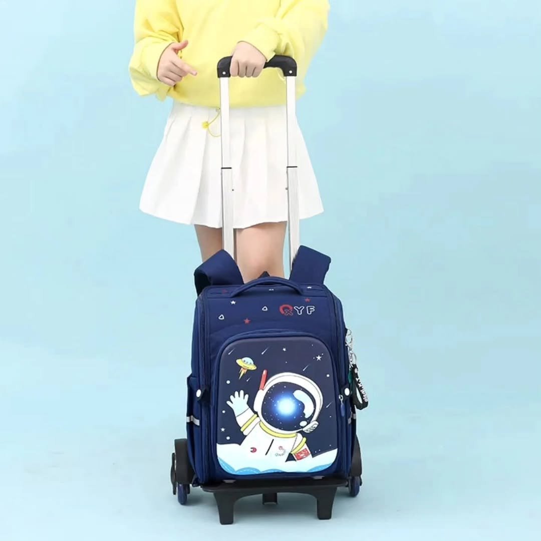 The Cartoon Themed Rolling Trolley School Bag makes school days fun and comfortable for kids. Designed with playful cartoon prints, it helps reduce strain from heavy school bags.