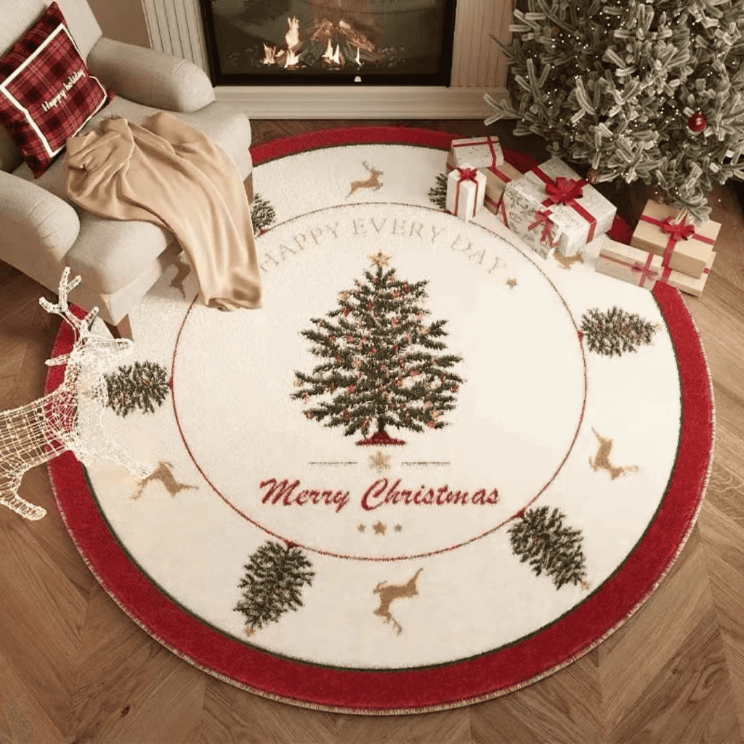 Christmas Circular Carpet Washable Anti Slip Carpet New Year Atmosphere Mat Decoration (120cm)