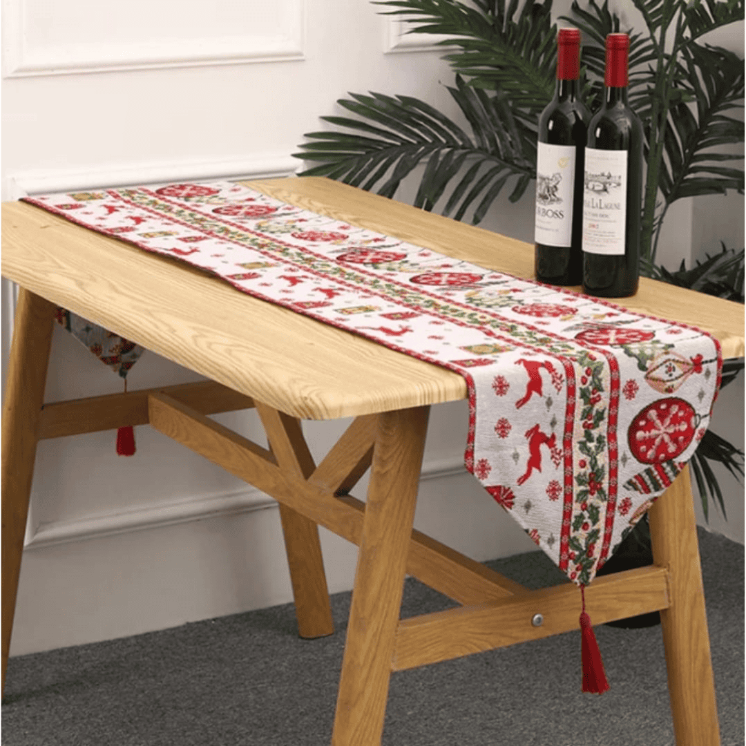 Its soft knitted fabric brings a cozy texture to your table, while the festive pattern enhances the overall holiday atmosphere. Measuring 35×180 cm, it fits perfectly on dining tables, coffee tables, and consoles.
