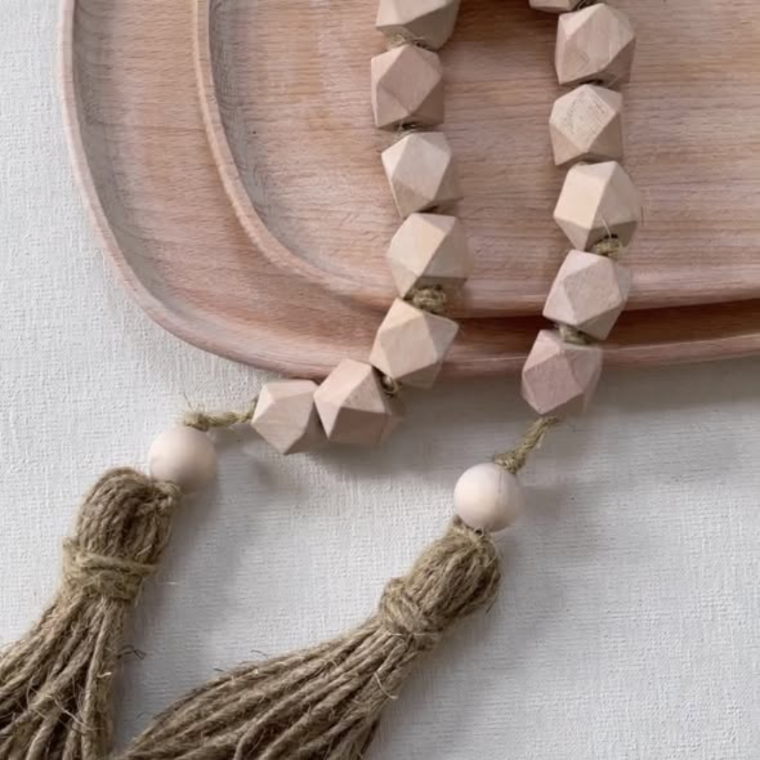 The Decorative Bead Garland is the ultimate “finishing touch” accessory for the modern home, designed to add texture and visual interest to your styling. This Decorative Bead Garland measures 80cm in length, providing the perfect size for draping over a stack of coffee table books, wrapping around a large vase, or hanging from a decorative hook. Crafted from high-quality, natural wooden beads and finished with a rustic tassel, this garland embodies the “modern farmhouse” and “bohemian” aesthetic that is currently trending in interior design. It is a simple yet powerful tool for adding a layered, curated look to your shelves and tables.