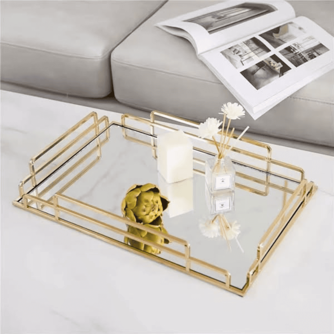 The Decorative Metal Alloy Tray with Mirror is versatile—use it as a serving tray for drinks, a vanity tray in the bedroom, or as a centerpiece on a coffee table. Its timeless design makes it suitable for both modern and classic interiors, while also being an excellent gift choice for special occasions.