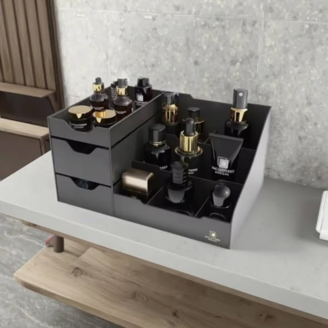 The Desktop cosmetic/ cologne organizer is crafted from high-quality, durable materials—often clear acrylic or polished metal—that complement any bedroom or bathroom decor. The tiered or multi-compartment design is specifically sized to accommodate various bottle heights, from tall skincare serums to heavy glass cologne bottles. Its stable base ensures that your valuable glass containers stay secure and won’t tip over. By centralizing your grooming essentials, you streamline your morning routine and protect your products from accidental spills or damage. It is an essential tool for anyone looking to maintain a tidy and curated “dressing table” or “office desktop.”