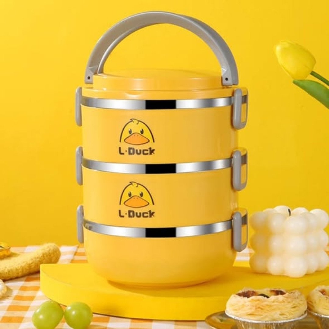 The Detachable 3 layered Duck Lunch Dish interior is lined with high-quality stainless steel, which is the gold standard for food hygiene. It doesn’t retain flavors or stains and is incredibly easy to sanitize after a long day. While the playful “duck” theme makes it a massive hit with younger users, its sheer practicality makes it suitable for kids, travels, Office, and picnic’s vibes. For office workers, it provides a sleek way to carry a full lunch plus snacks without needing multiple bulky containers. For parents, it’s a fun way to encourage children to finish their balanced meals by presenting different food groups in their own dedicated layers.