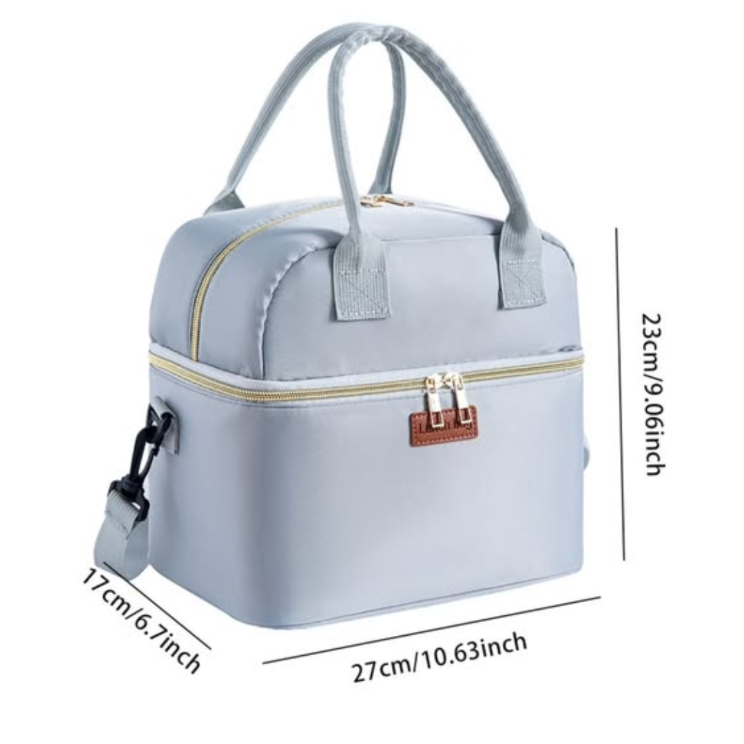 Portability and comfort are at the heart of this design. The Double layer insulated lunch bag comes equipped with a reinforced top handle and a convenient removable strap, giving you the flexibility to carry it as a handbag or wear it over your shoulder for hands-free travel. The interior is lined with high-quality, leak-proof insulation that is exceptionally easy to wipe clean, protecting your other belongings from accidental spills. Available in classic Black and Grey, this bag offers a minimalist aesthetic that complements any outfit or style. By investing in this insulated solution, you not only save money on takeout but also enjoy a more organized and enjoyable midday dining experience.