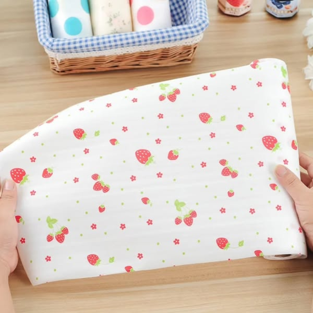 Add freshness, color, and protection to your drawers and shelves with the Drawer Mat or Liner Roll Mat. Available in various fun patterns like strawberry, flowers, and polka dots, this liner roll mat is perfect for keeping surfaces clean and scratch-free.
