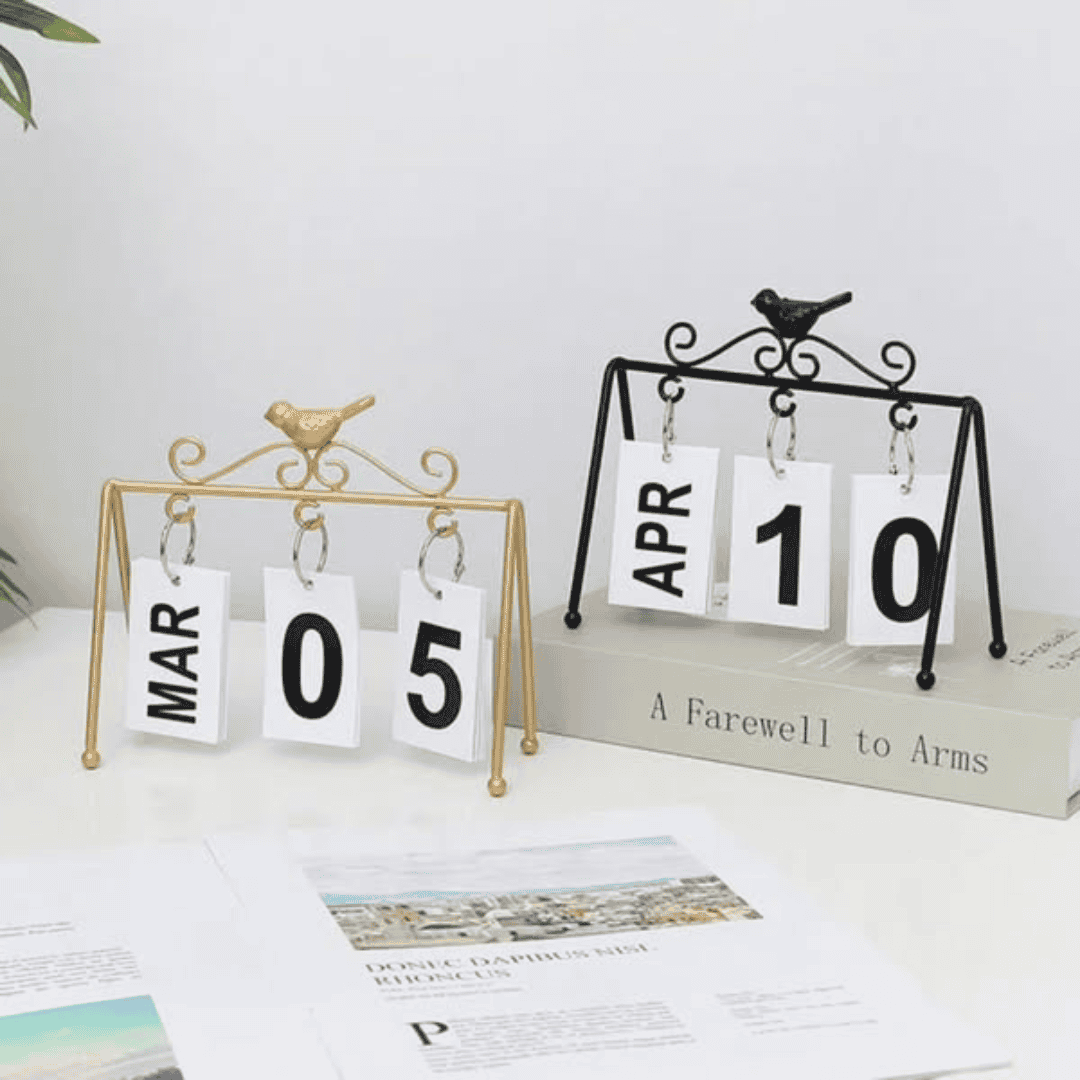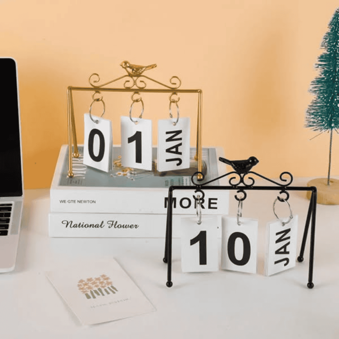 Bring timeless elegance to your desk or living space with the Flip Perpetual Calendar Decor. Crafted from sturdy iron and available in black and gold finishes, this perpetual calendar combines functionality with modern design. Unlike disposable paper calendars, this durable piece is reusable year after year, making it both eco-friendly and stylish.