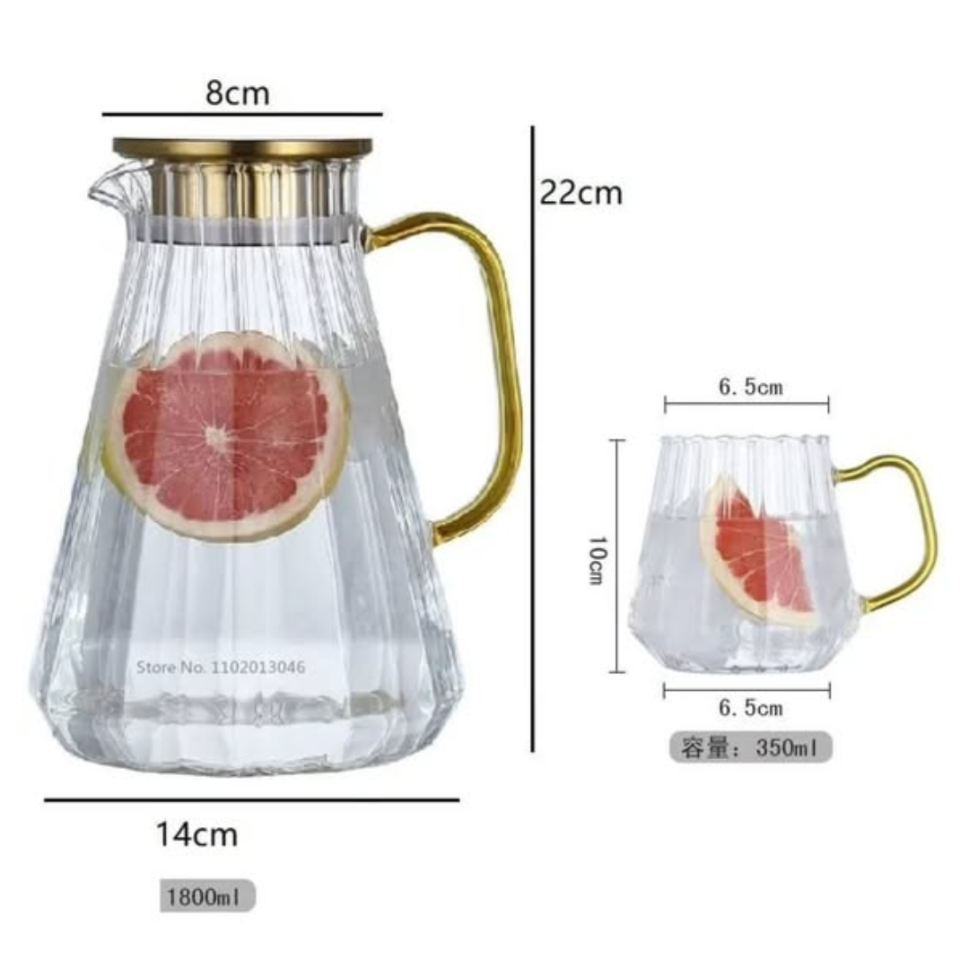 The Glass Decanter Kettle Cups Set is an elegant and practical addition to any household that values both style and hydration. Using a Glass Decanter Kettle Cups Set transforms the simple act of serving water, juice, or tea into a sophisticated experience. This set typically features a large-capacity thermo-resistant glass pitcher along with matching cups, all designed with a cohesive, modern aesthetic. The high-quality glass is crystal clear, allowing the vibrant colors of lemon-infused water, iced tea, or fresh fruit juices to shine through, making it a beautiful centerpiece for dining tables or garden parties.