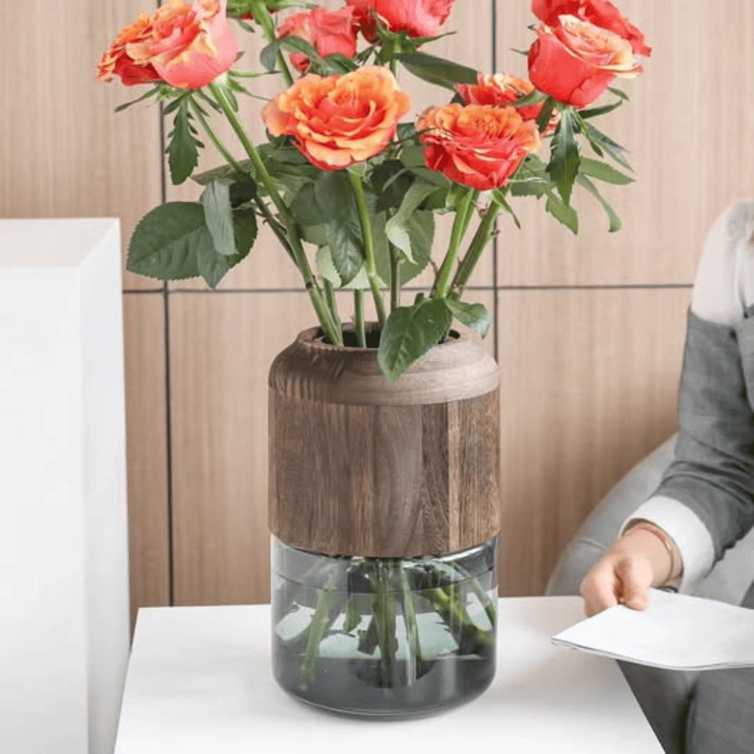 Crafted from high-quality clear glass, the vase is enhanced with a detachable wooden decorative element, allowing you to switch between sleek modern elegance and a rustic natural vibe. This versatile feature makes it perfect for different interior styles – from contemporary urban homes to cozy, nature-inspired spaces.