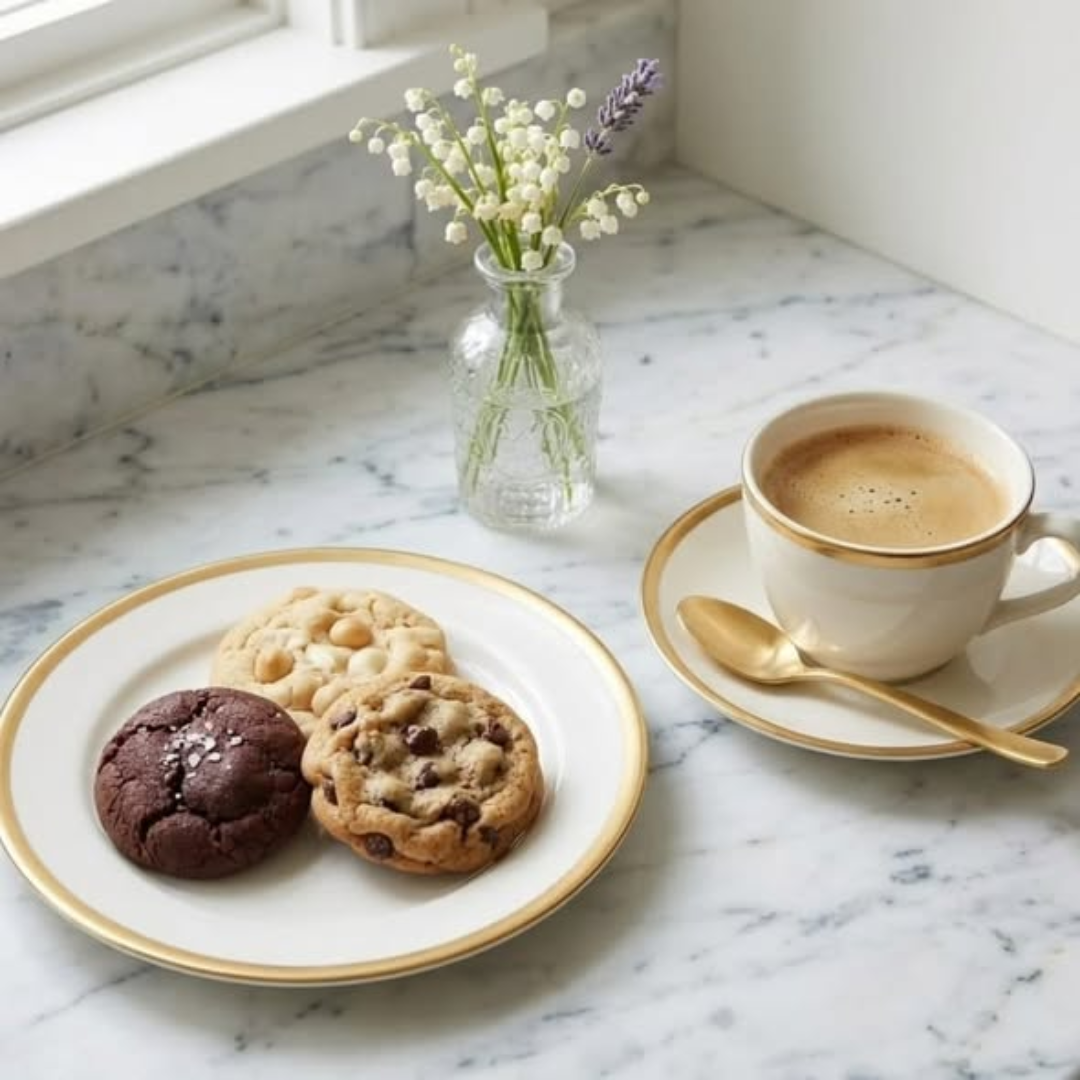 The Gold ring dessert side plate is a stunning example of how simple details can transform a functional item into a piece of luxury. This Gold ring dessert side plate features a pristine ceramic body accented by a delicate gold ring around the perimeter, creating a frame that makes every dessert look like a professional masterpiece. Whether you are serving a slice of gourmet cake, delicate pastries, or artisanal cookies, the 8-inch surface provides the ideal proportions for appetizers and sweets. Its elegant design is balanced with a sturdy ceramic build, ensuring it can transition easily from a casual afternoon tea to a high-profile evening event.