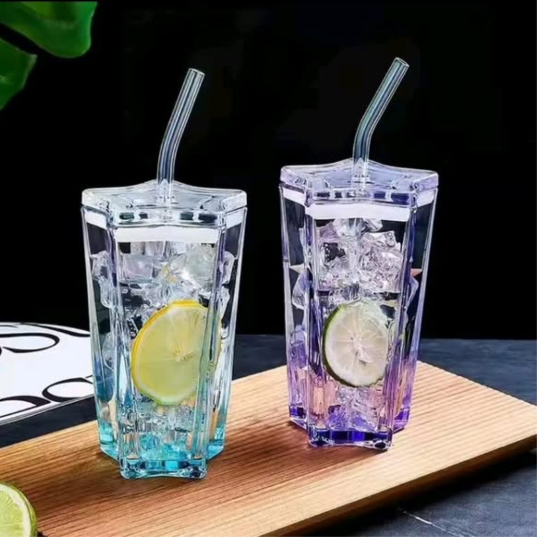 Upgrade your drinkware with the Heavy Duty Pentagonal Glass Tumbler with Straw, designed for both style and durability. This unique tumbler adds elegance to your drinking experience while remaining practical for everyday use.