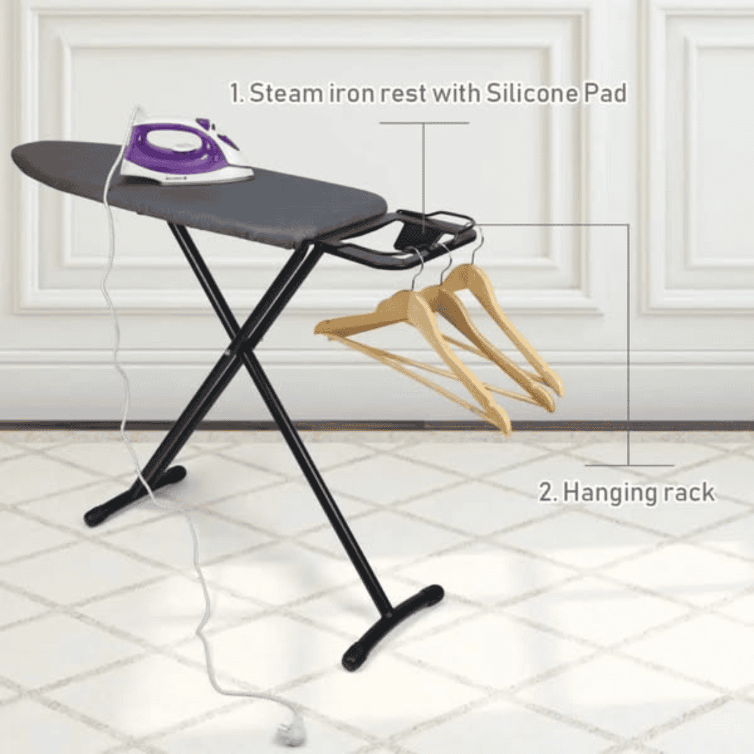 The board is designed with a durable surface and heat-resistant cover, making it suitable for all types of clothing. Lightweight yet stable, it can be easily stored when not in use.