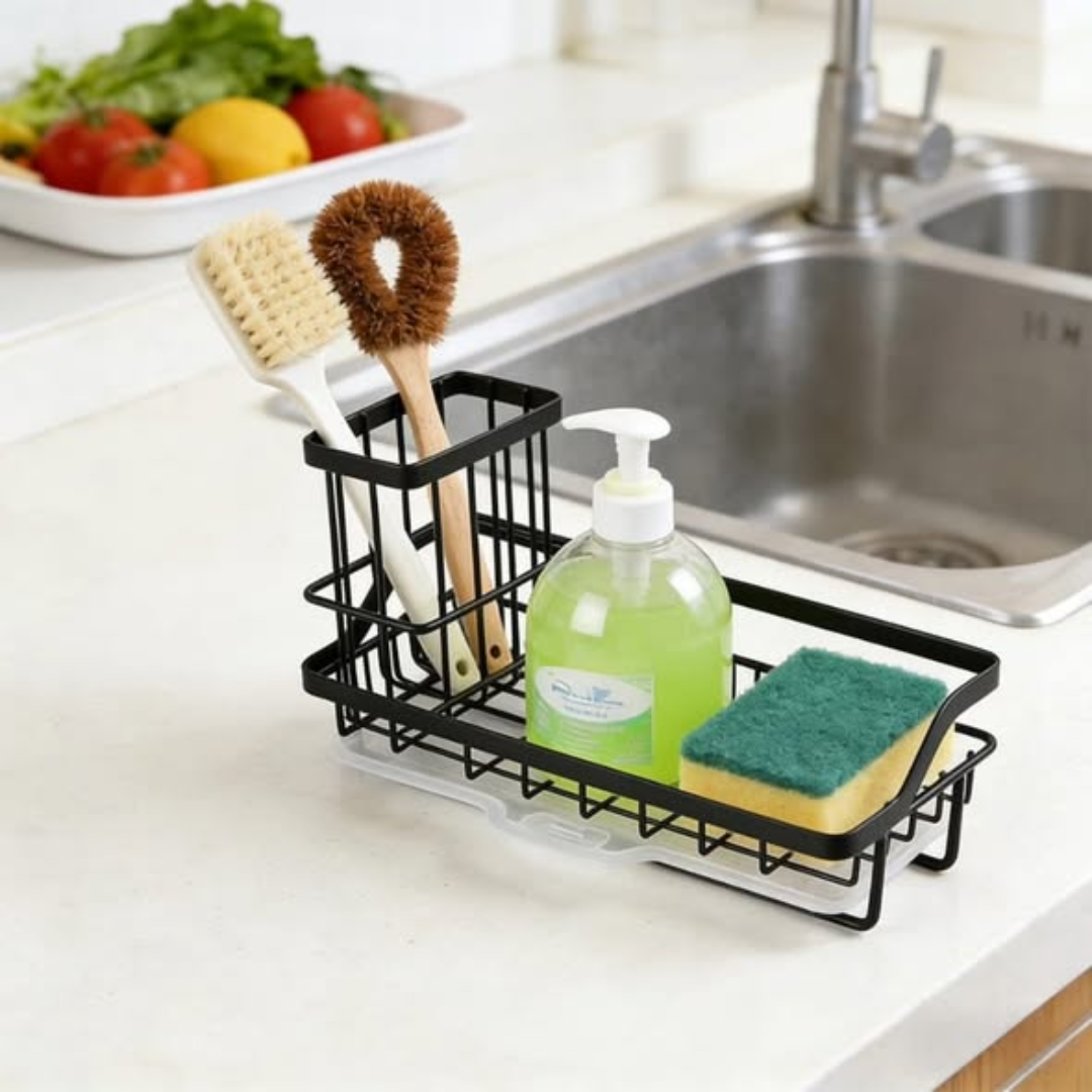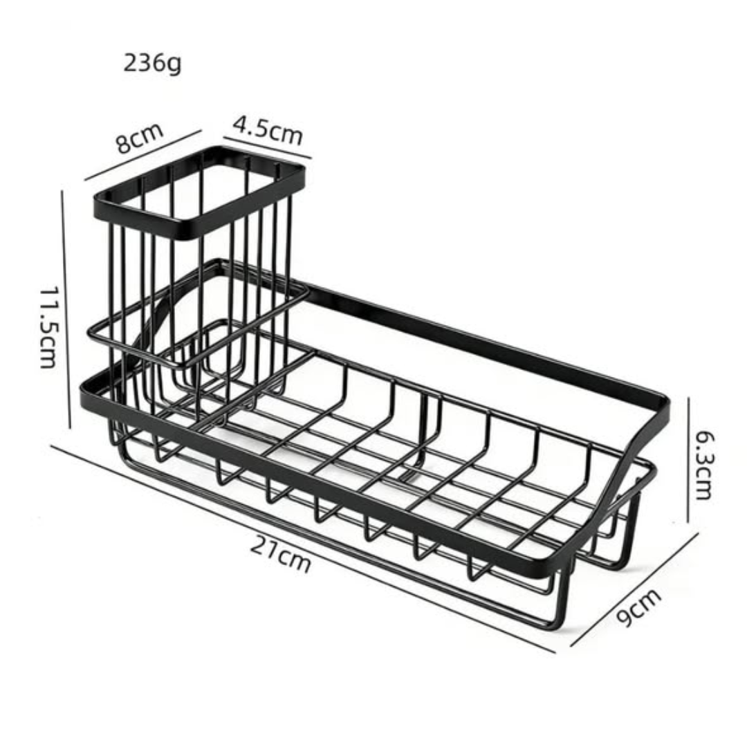 3-in-1 Functionality: Holds sponges, bar soap, and includes a rack for drying towels.